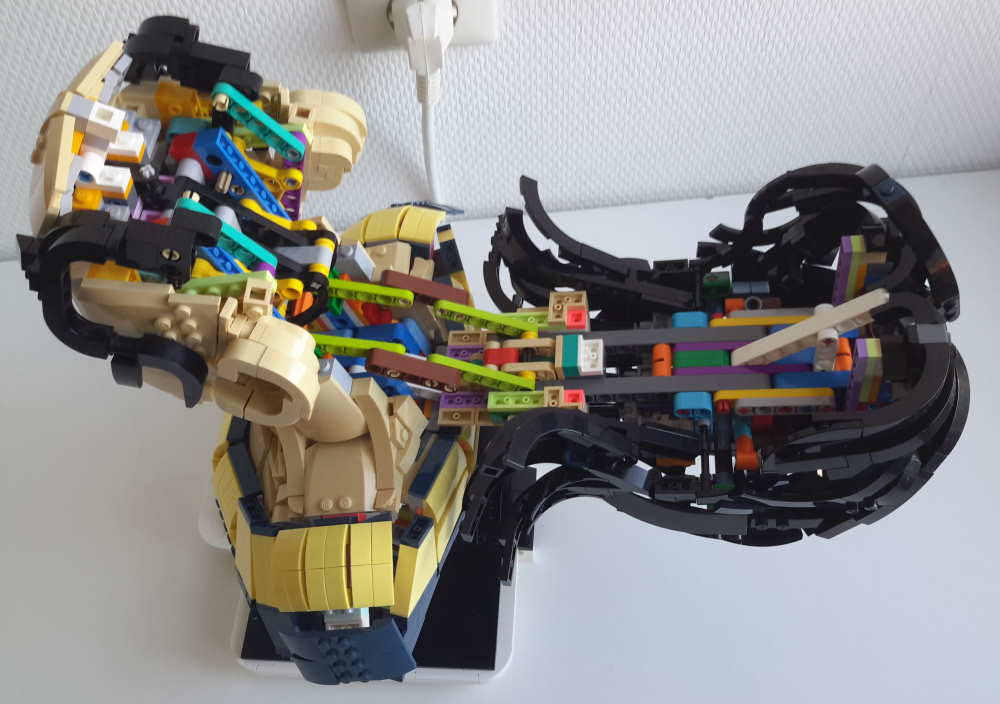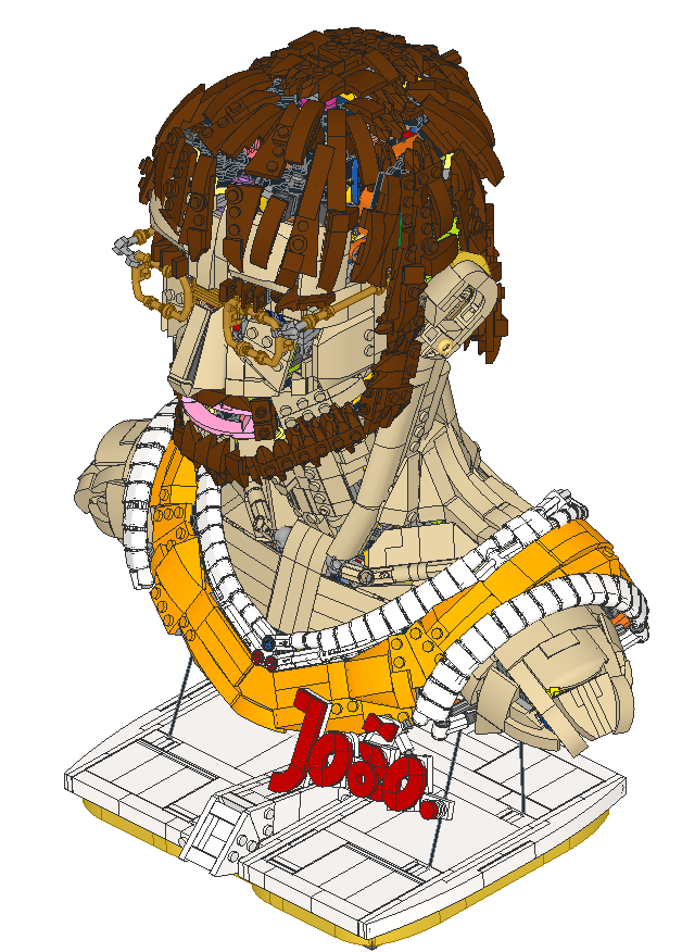 Aydin is niet poseerbaar, maar zijn hoofd kan openklappen om de constructie aan de binnenkant te zien.
