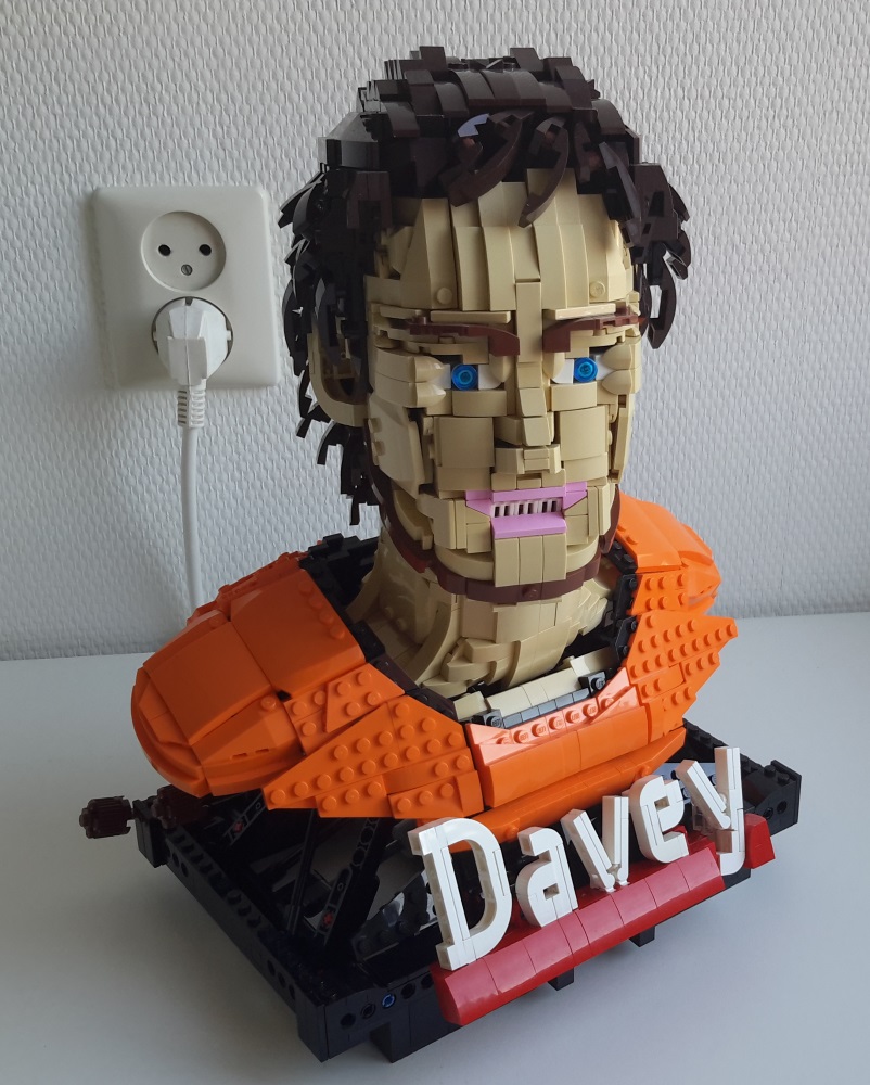 Davey is op drie manieren te poseren - zijn hoofd kan draaien; naar voren en naar achteren bewegen; en opzij. De laatste twee bewegingen werken met lineaire actuatoren in de standaard.