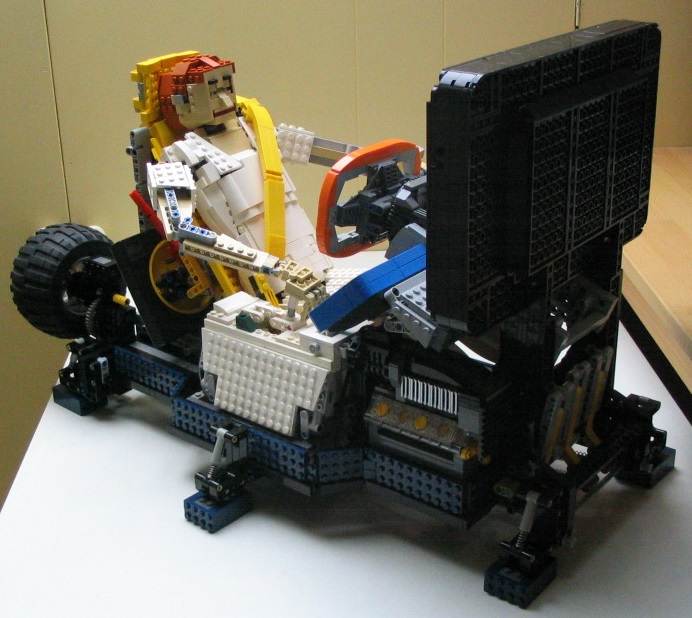 Deze racesimulator bestaat uit een mannetje dat in een speciale racestoel met gordel en pedalen, achter een beeldscherm achter een stuur zit, en rechts van zich een versnellingsbak bedient. Een elektromotor (de RC-buggymotor) drijft via de versnellingsbak een vliegwiel aan om het idee van optrekken en afremmen te simuleren. Tegelijk drijft de motor een cilindermotor aan. De volgorde van versnellingen is: boven 1, 3, 5, onder 2, 4, R.