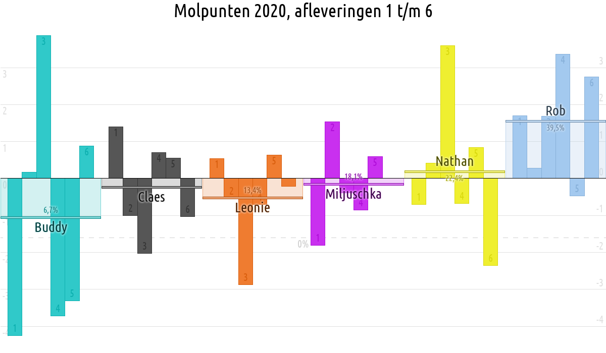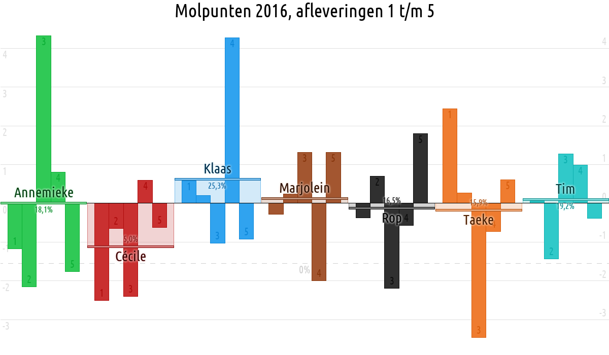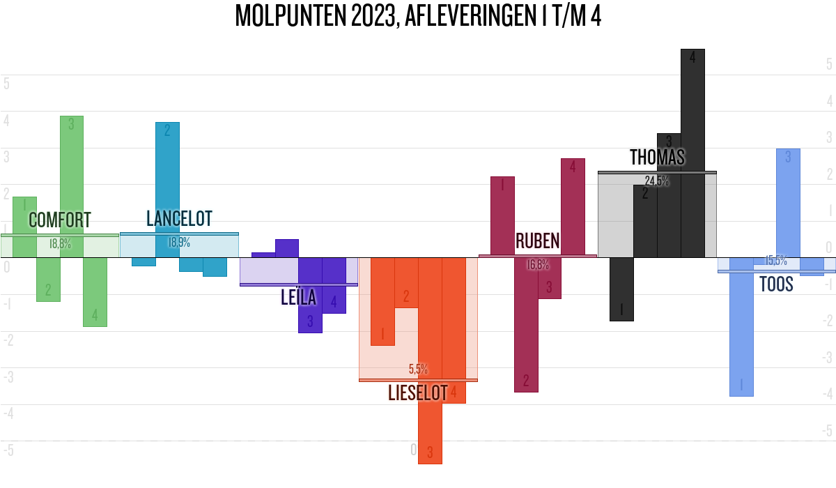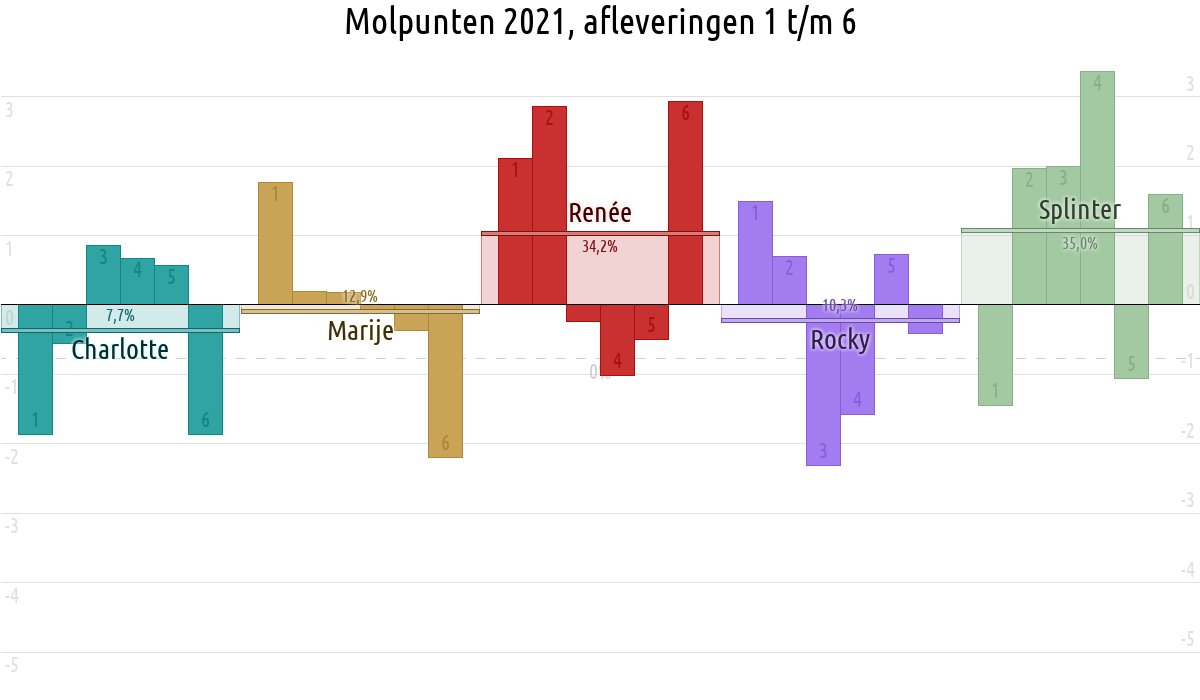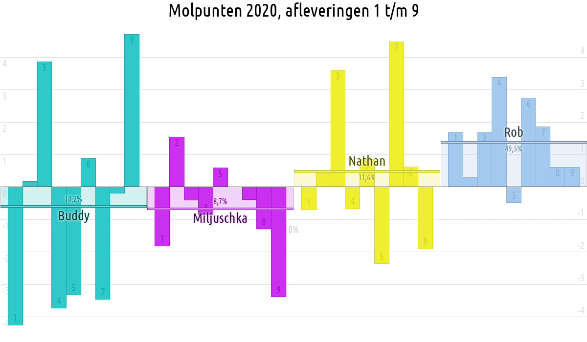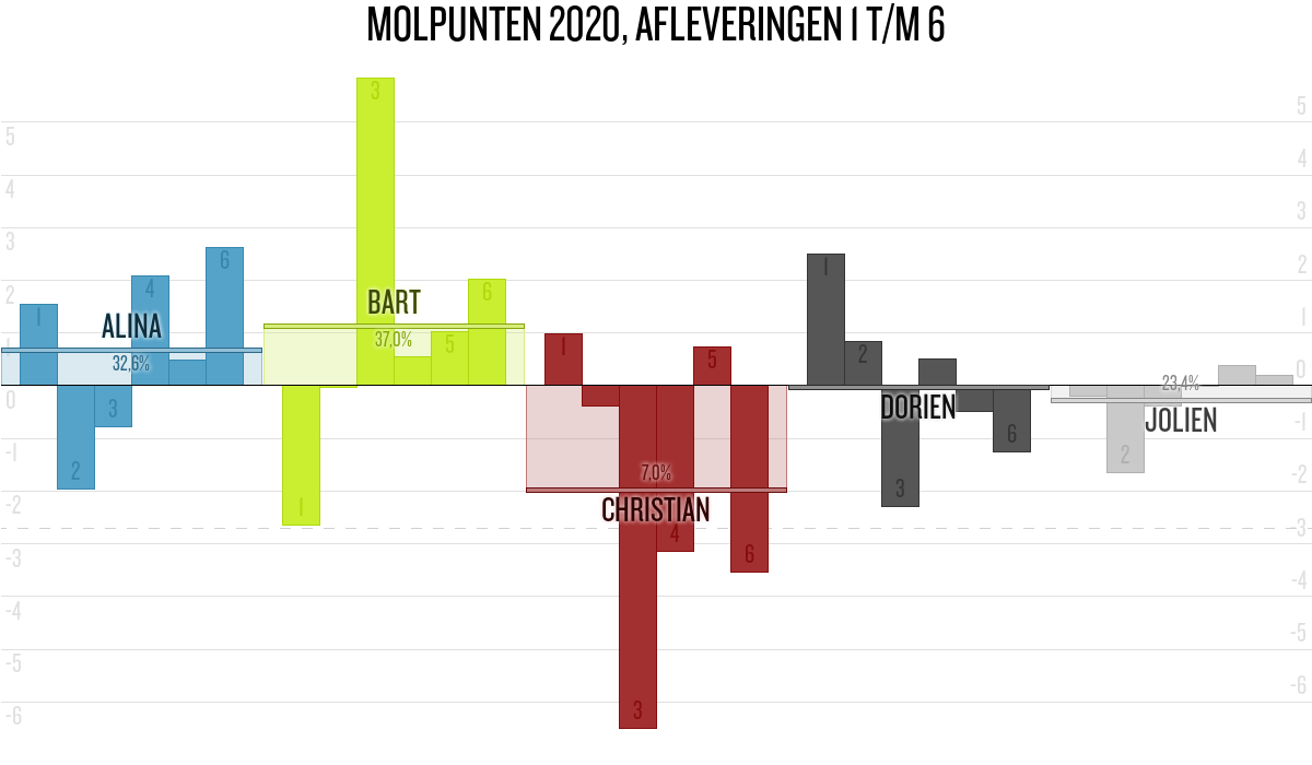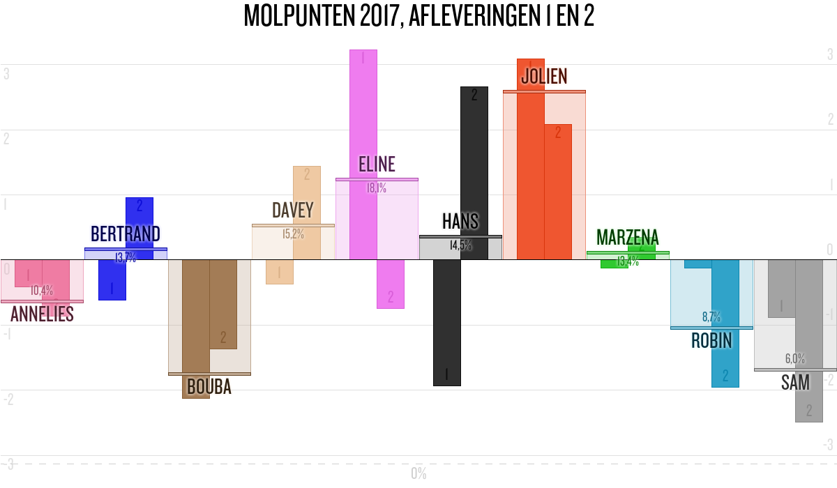 De deelnemer met de meeste molpunten is dus volgens deze theorie de mol.