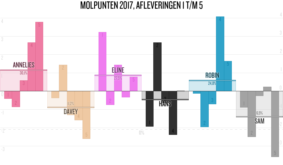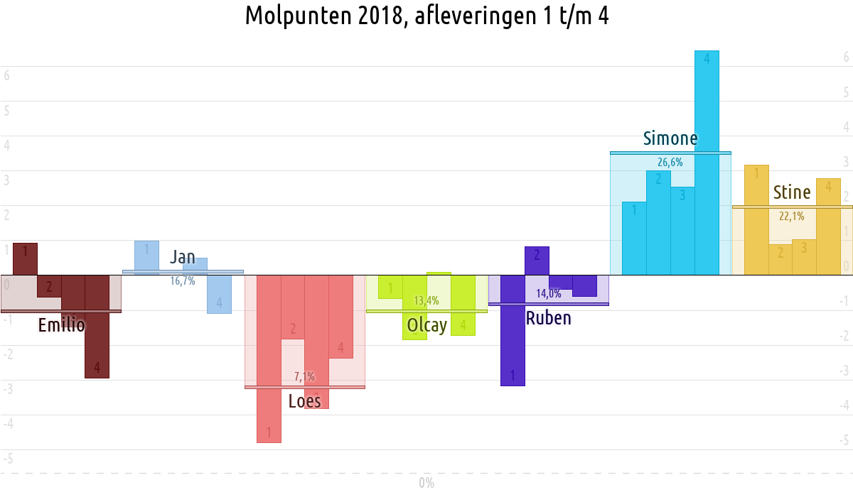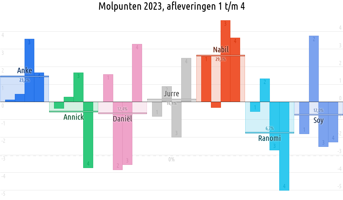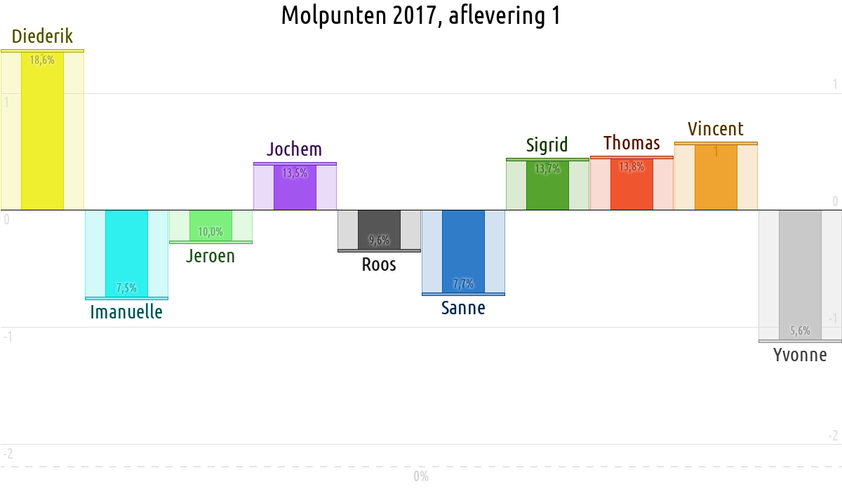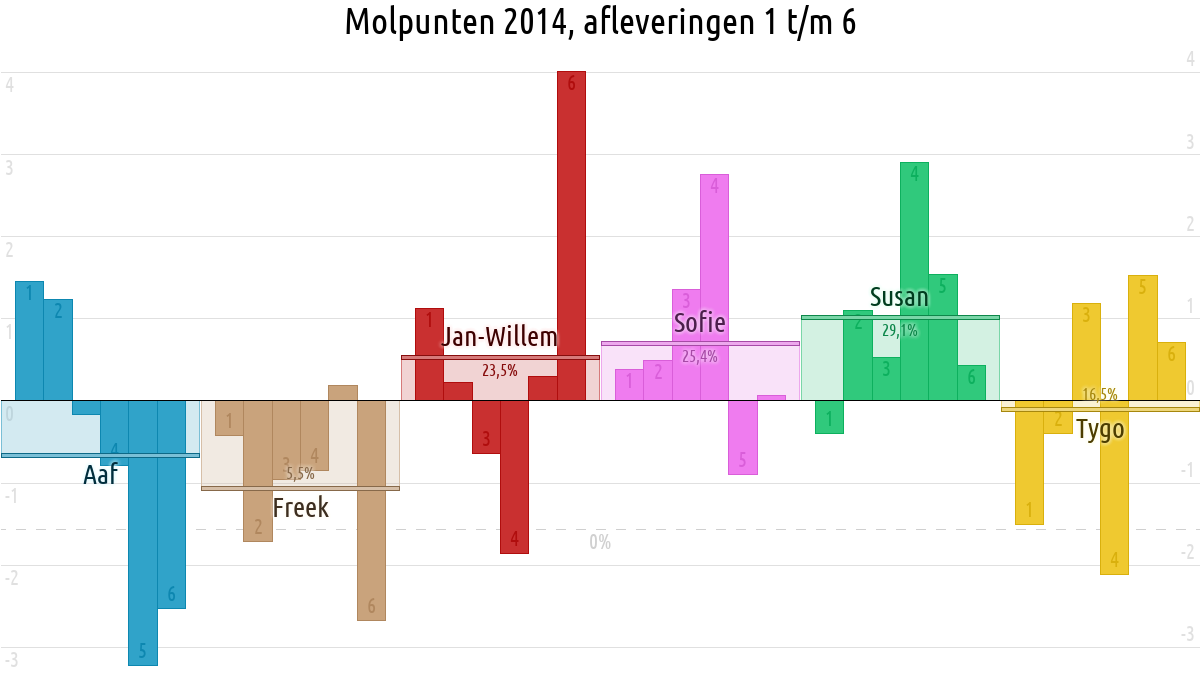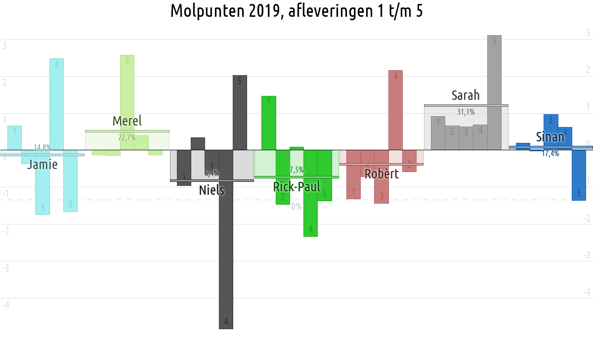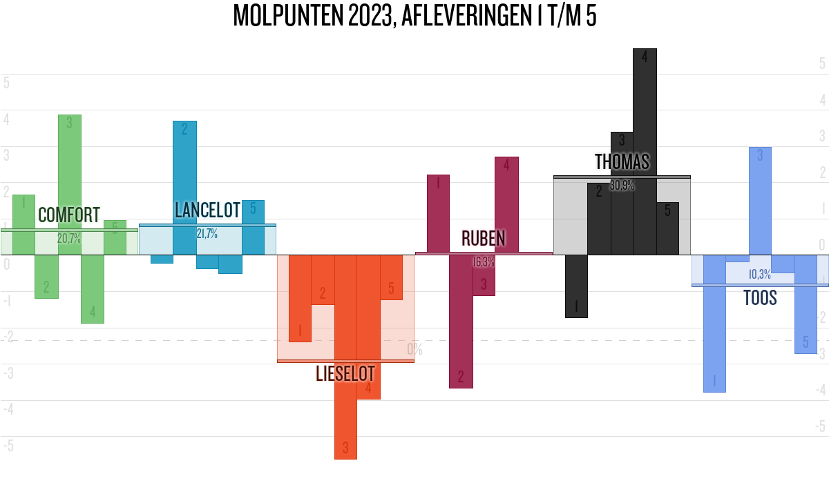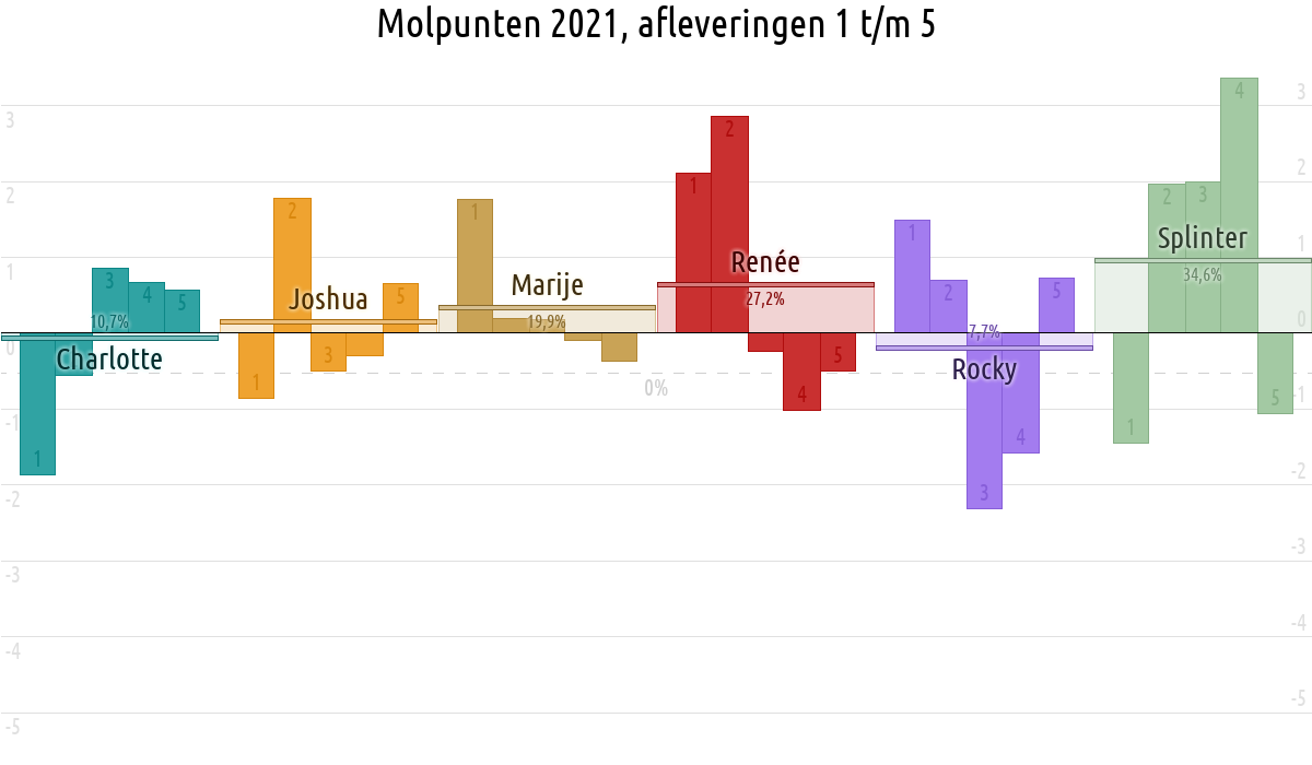 De deelnemer met de meeste molpunten is dus volgens deze theorie de mol.