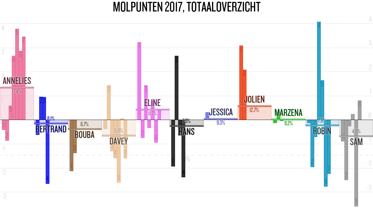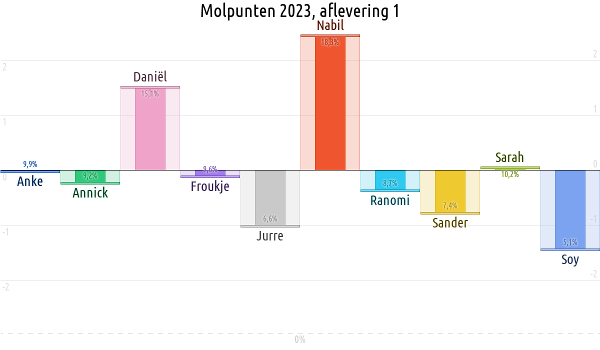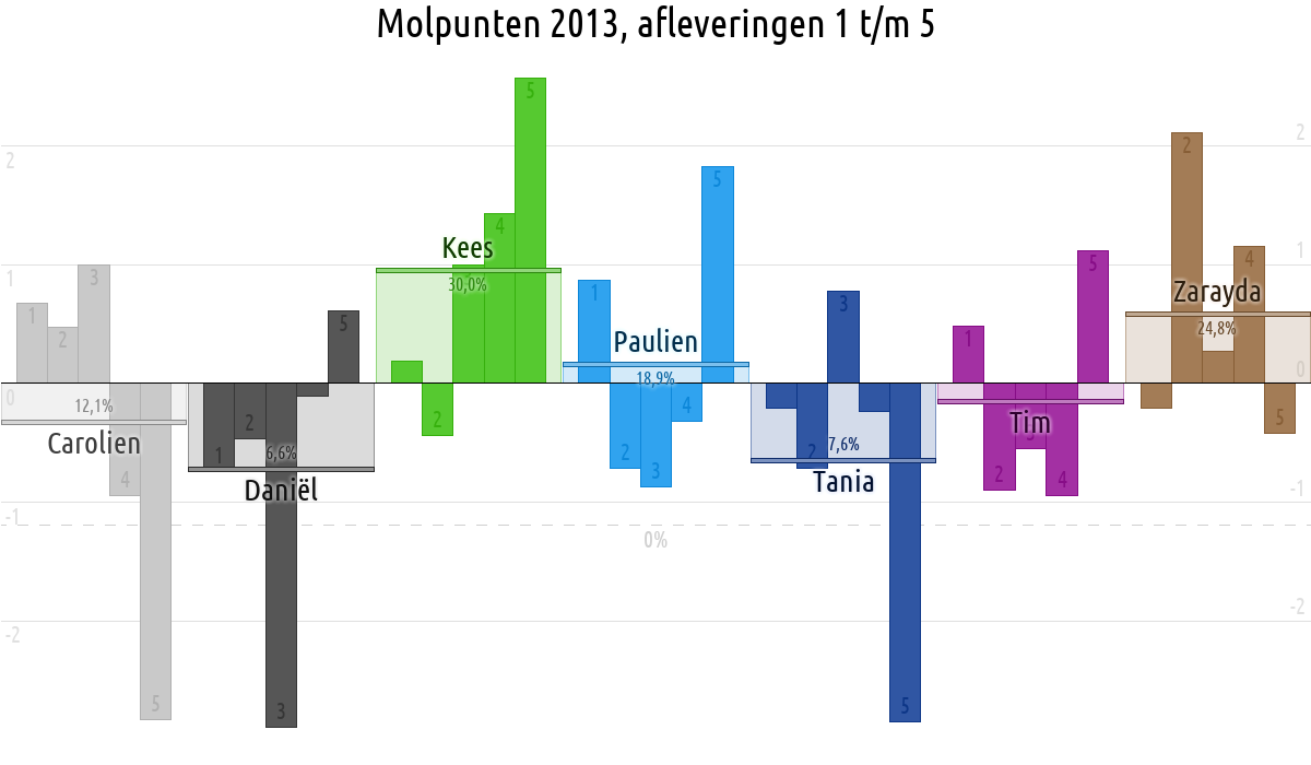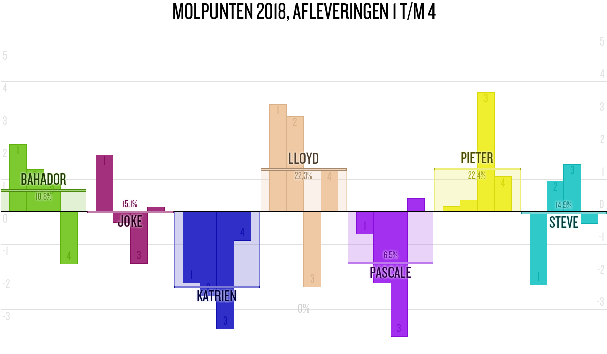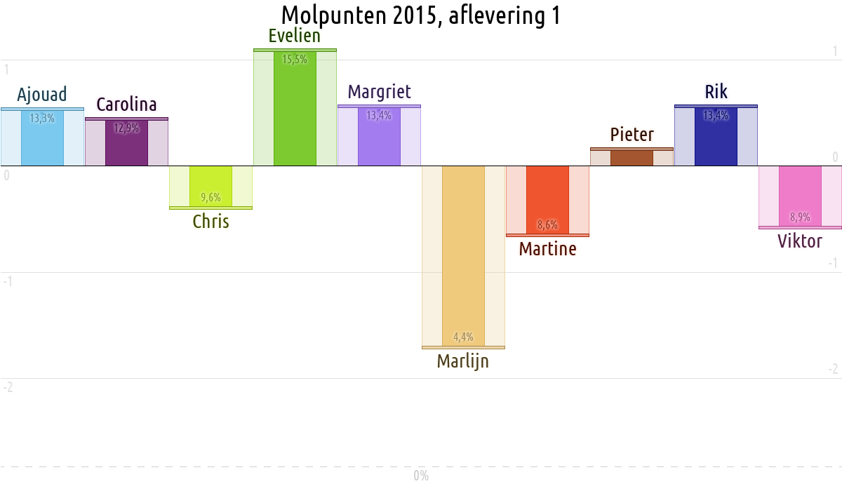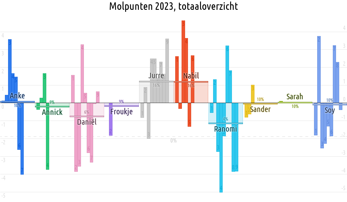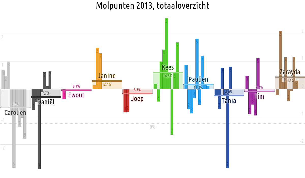 De deelnemer met de meeste molpunten is dus volgens deze theorie de mol.