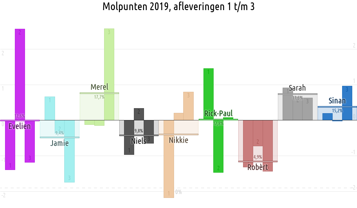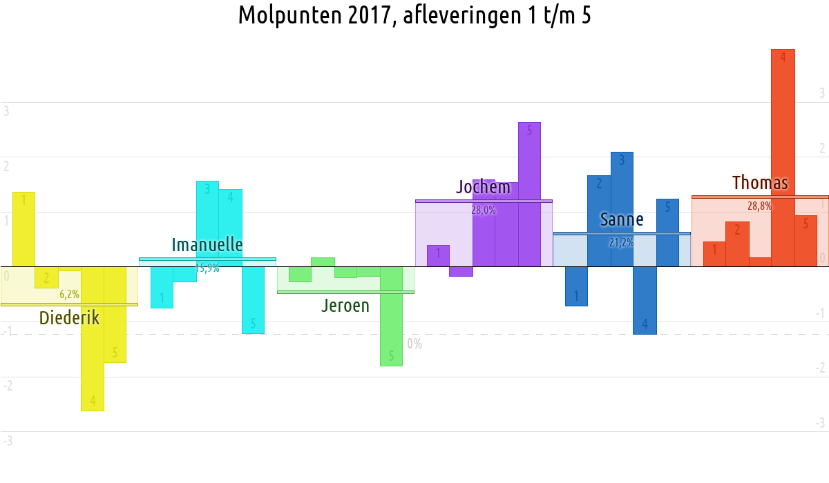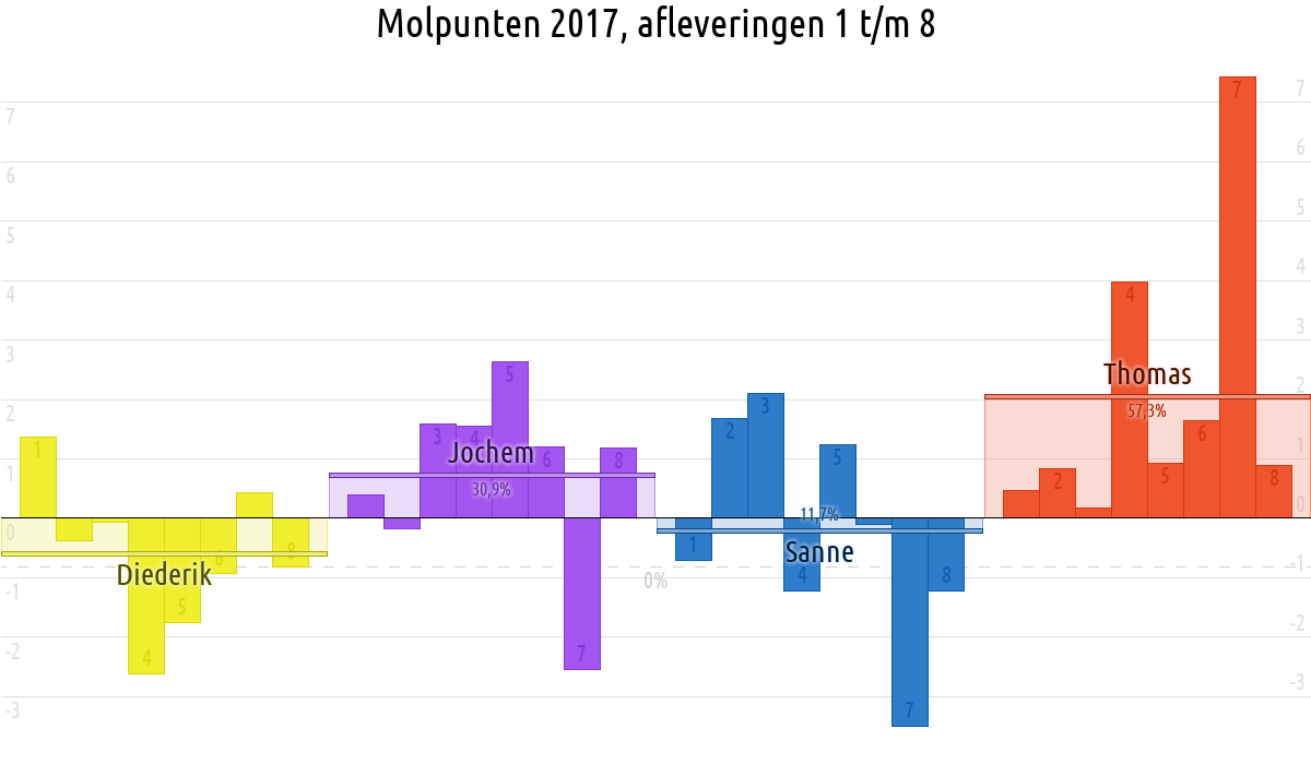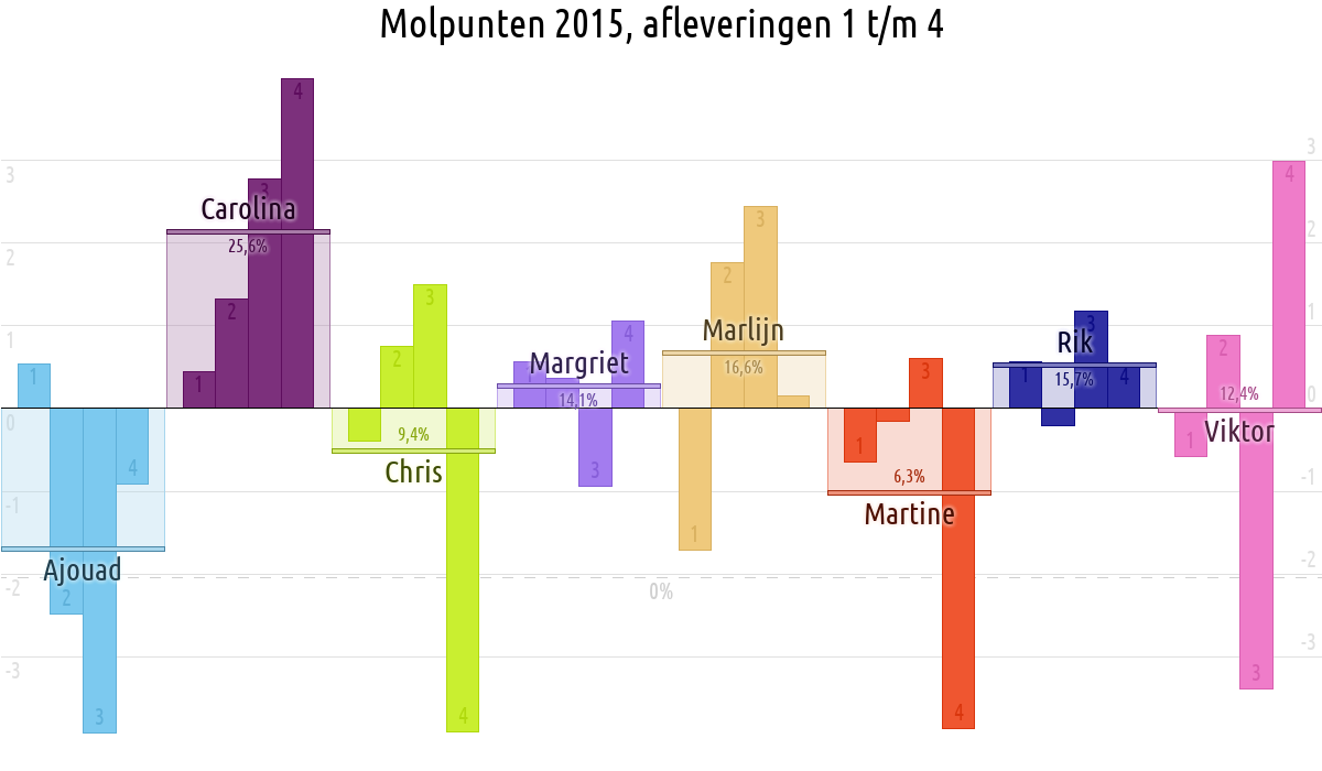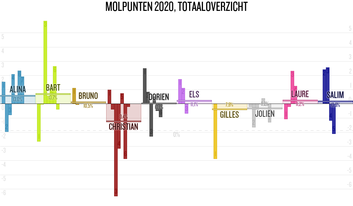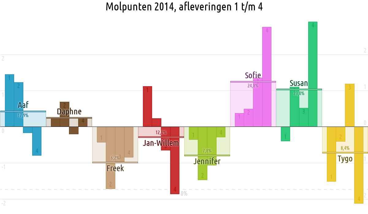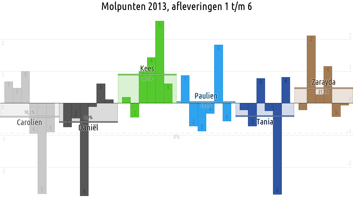 De deelnemer met de meeste molpunten is dus volgens deze theorie de mol.
