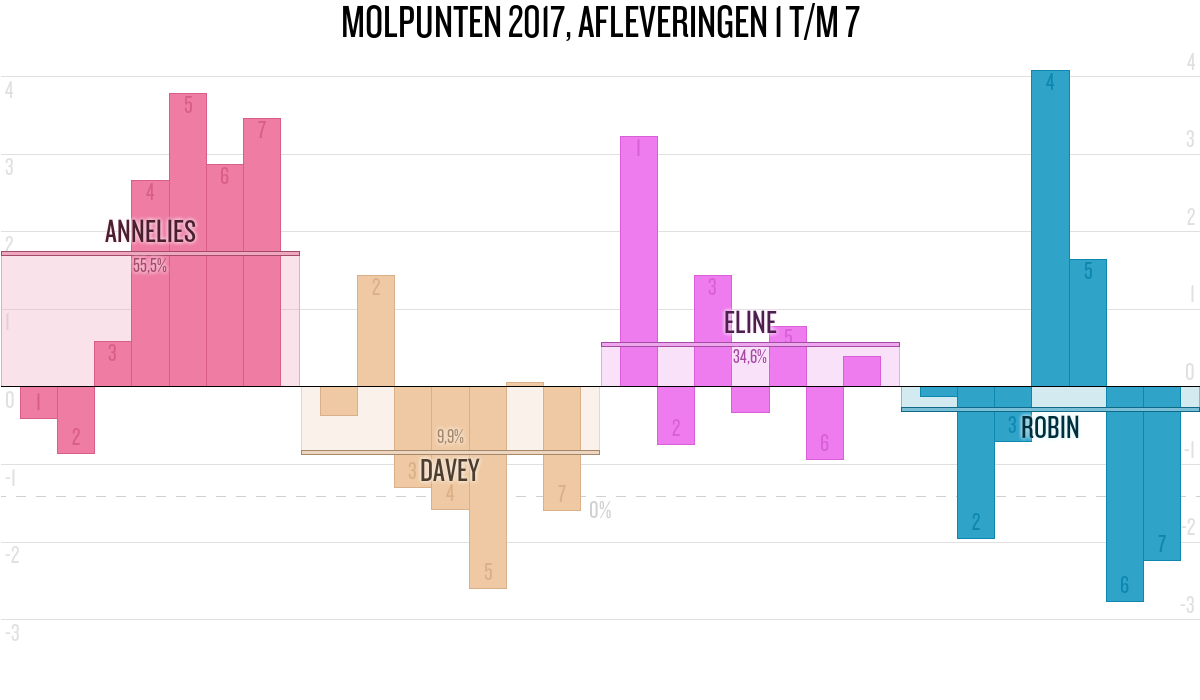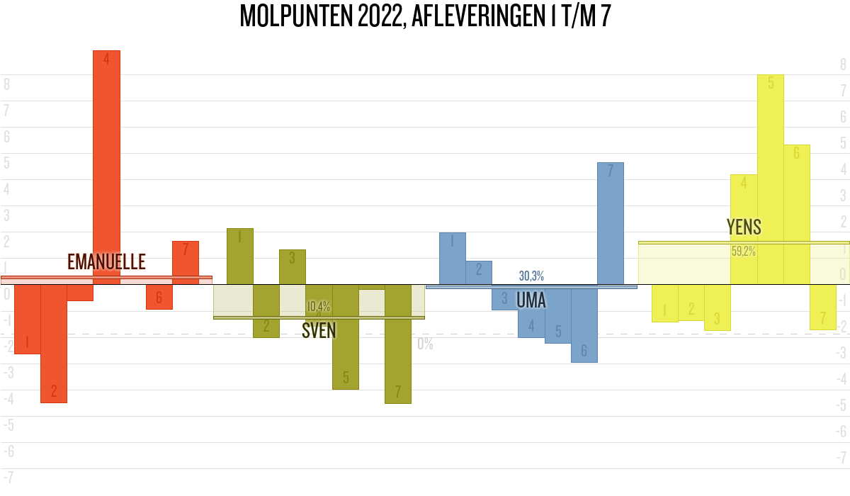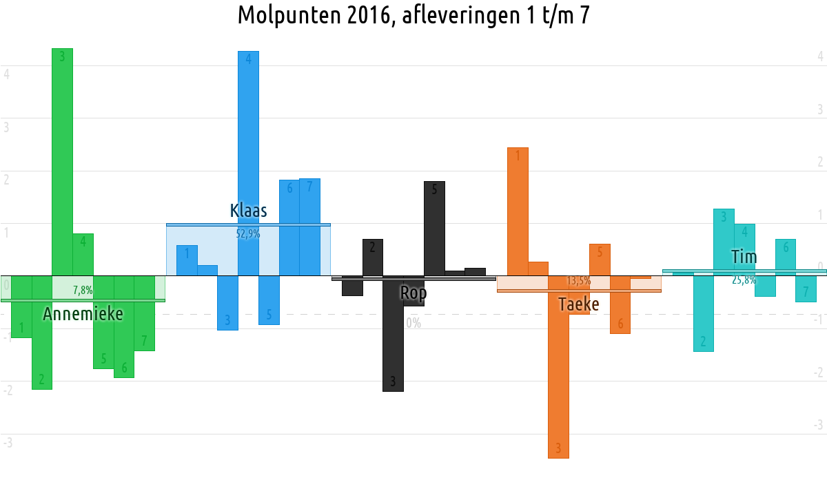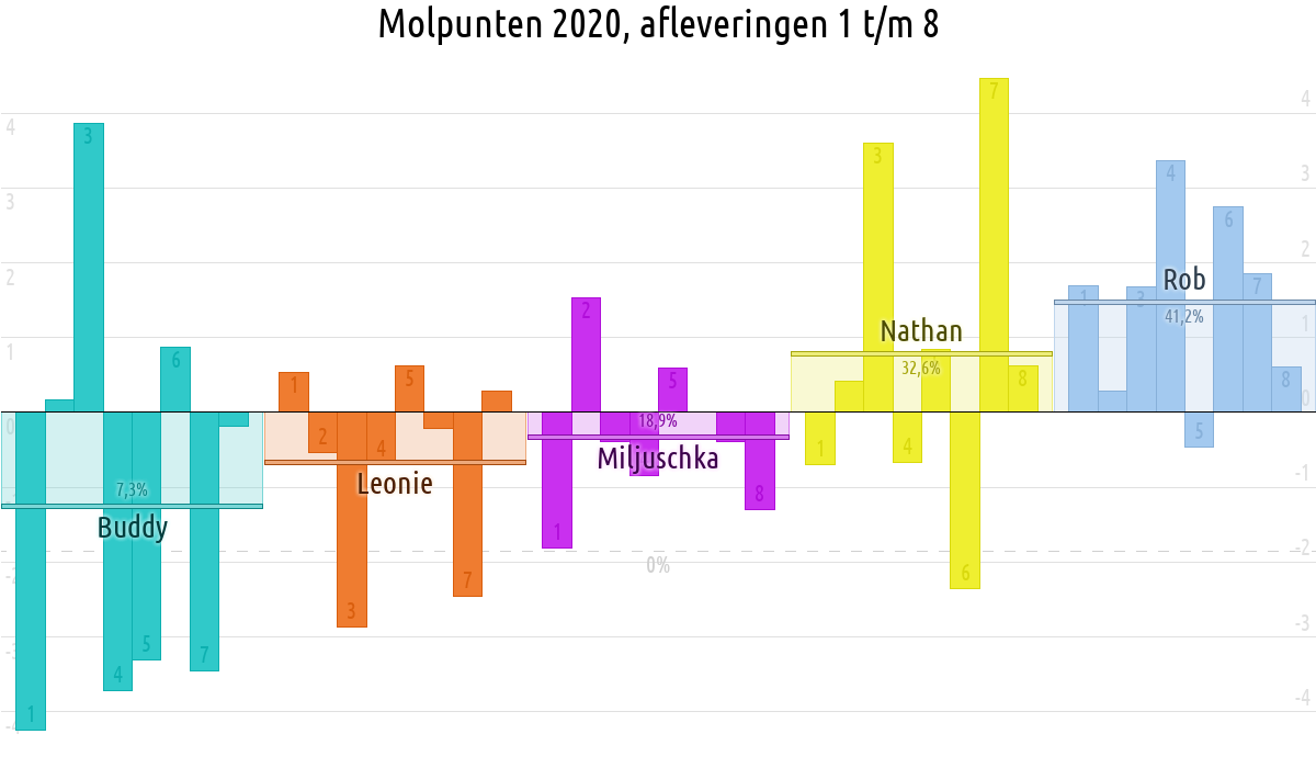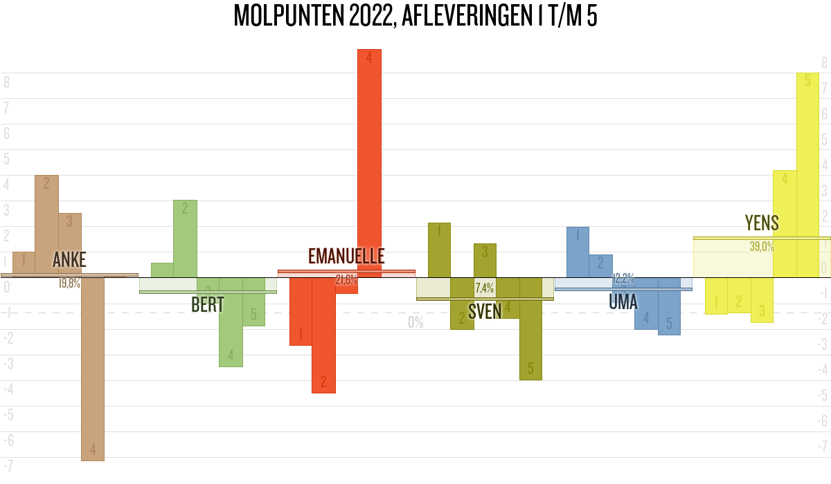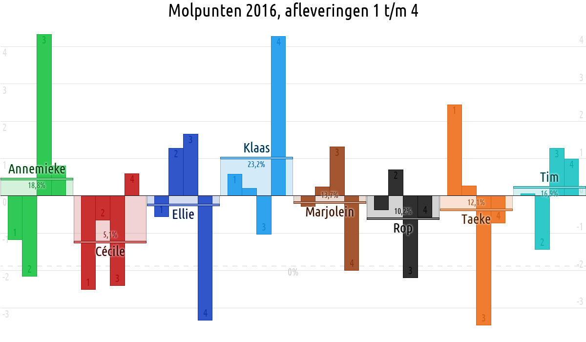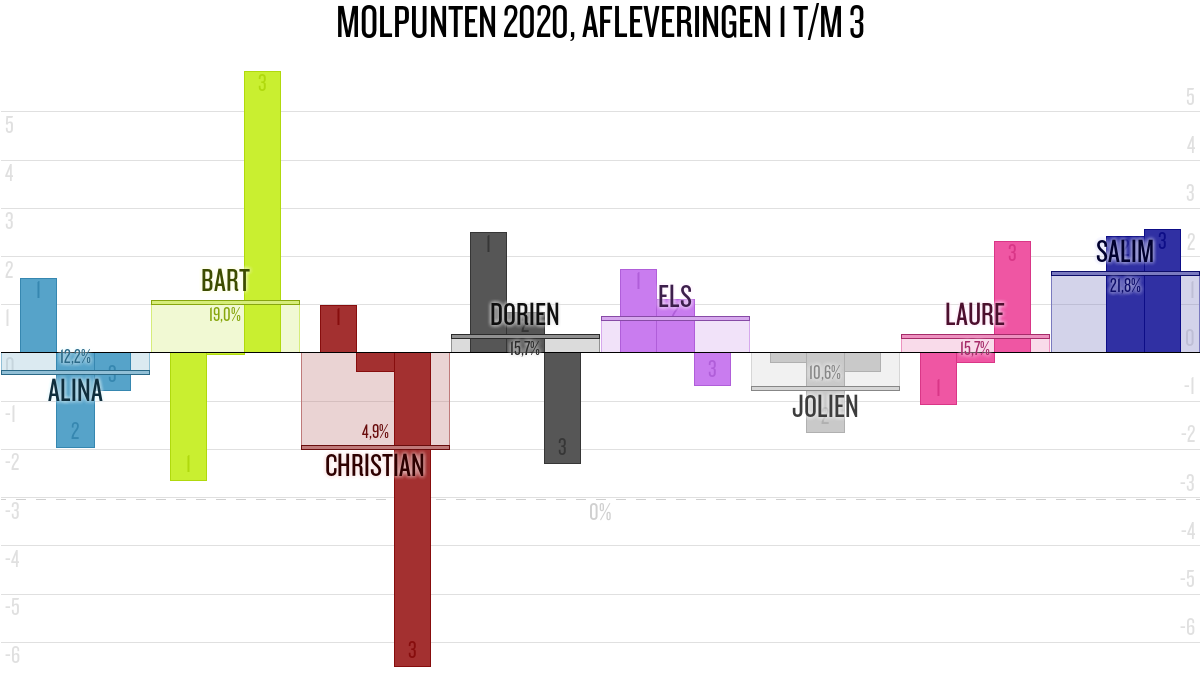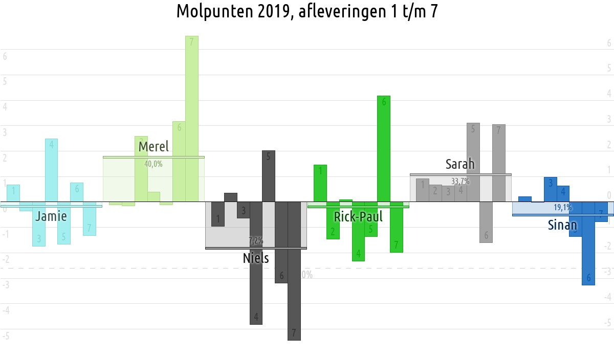 De deelnemer met de meeste molpunten is dus volgens deze theorie de mol.