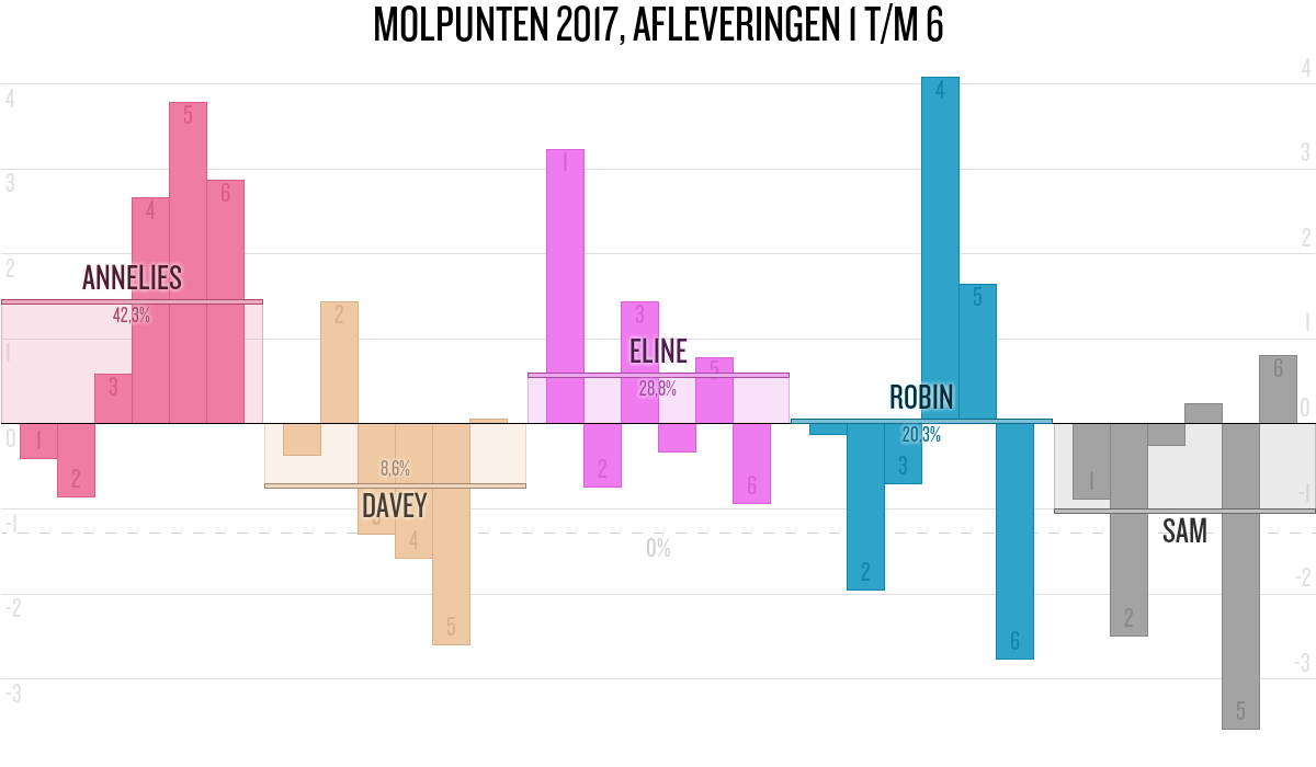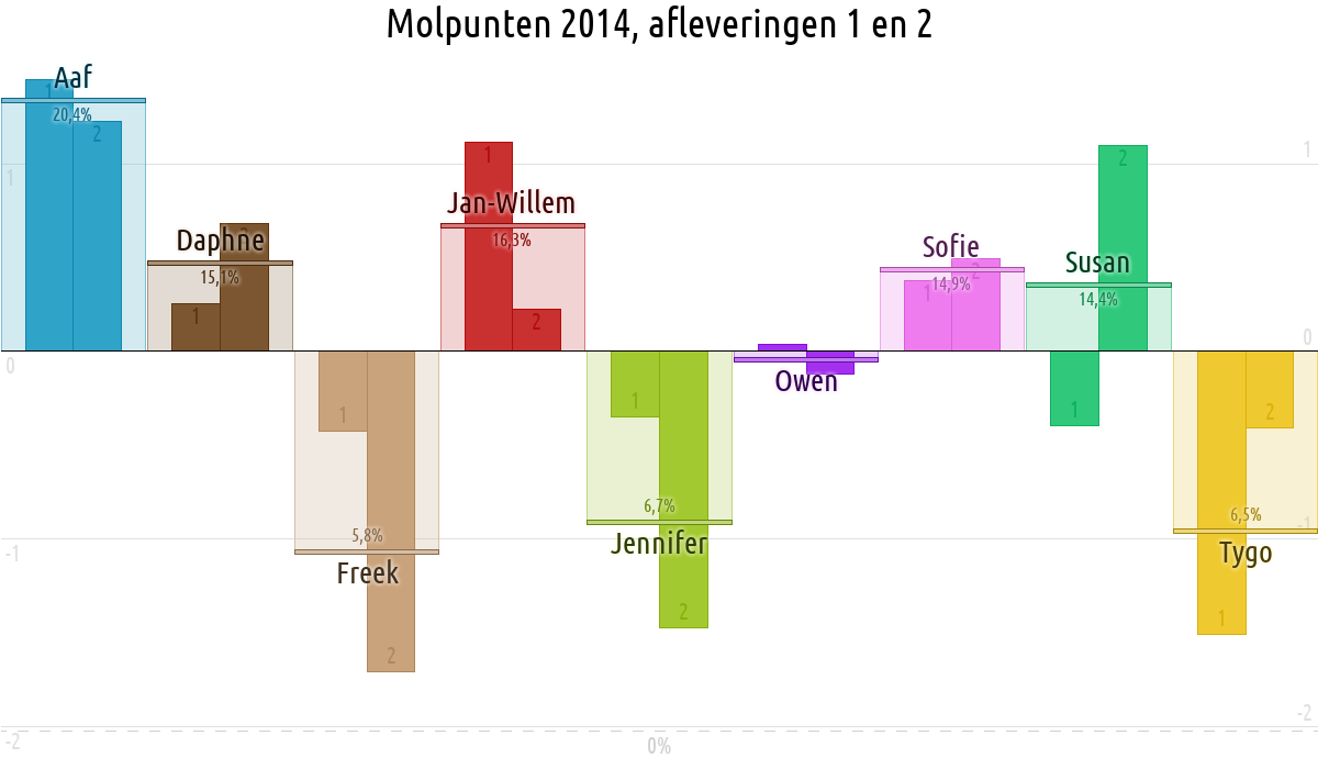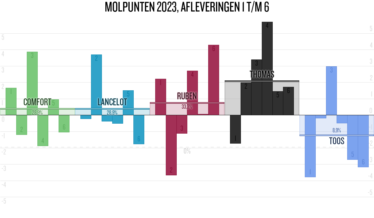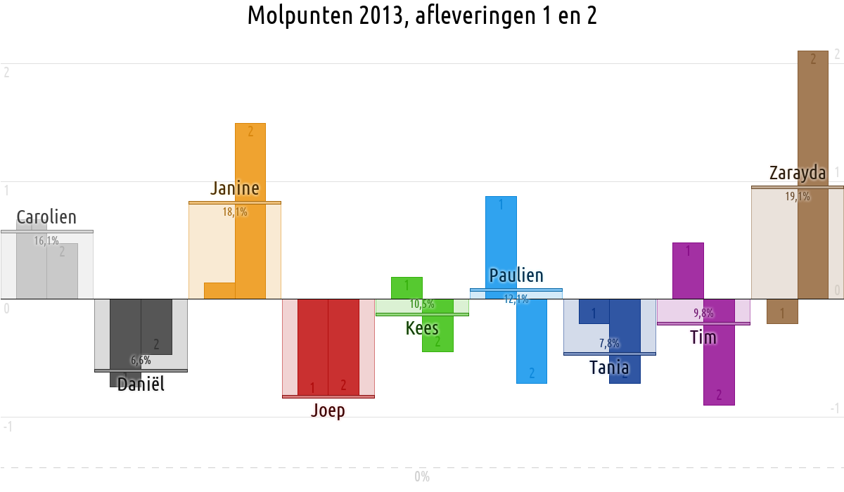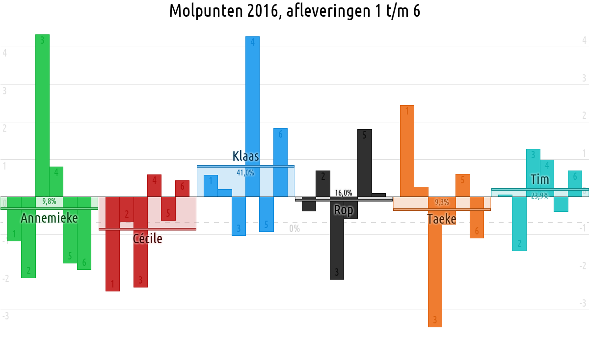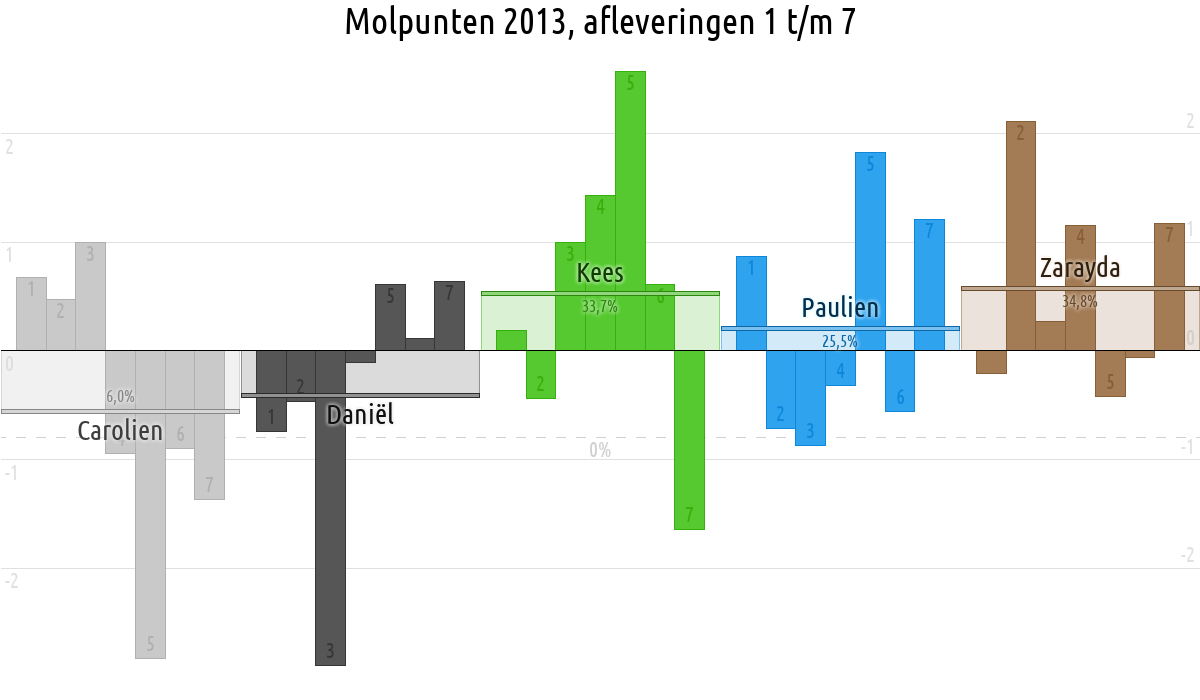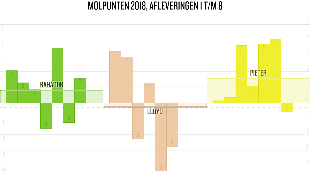 De deelnemer met de meeste molpunten is dus volgens deze theorie de mol.