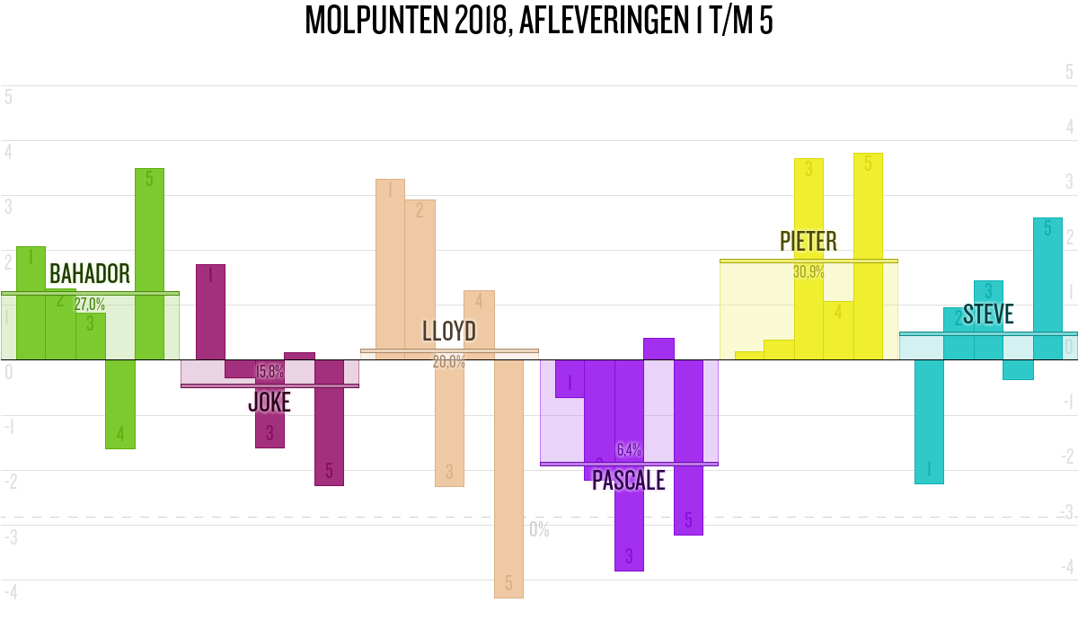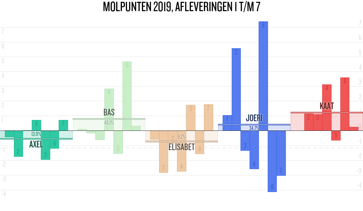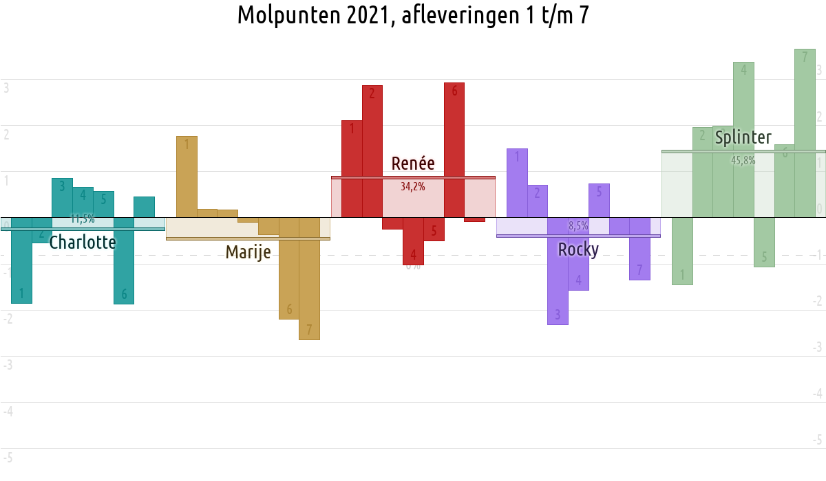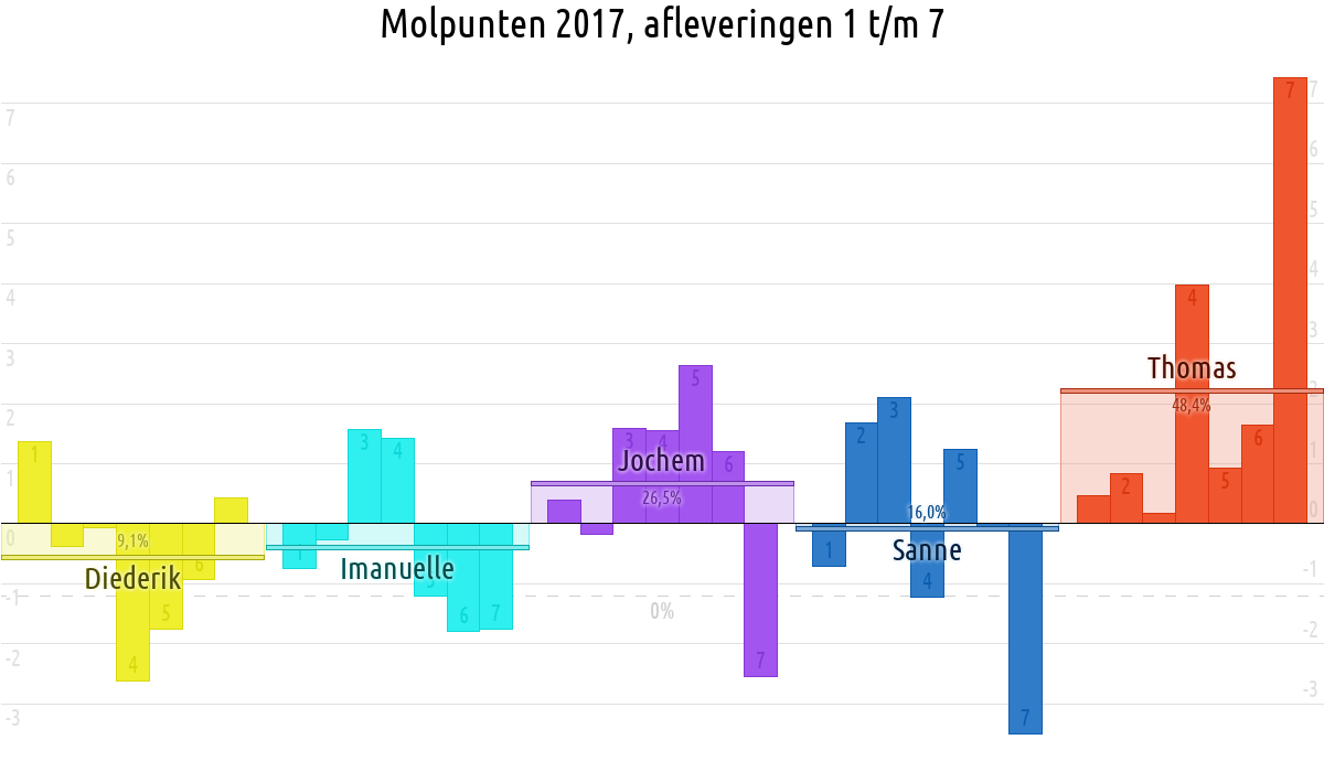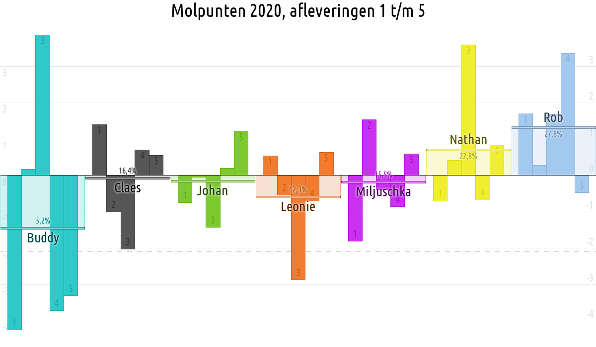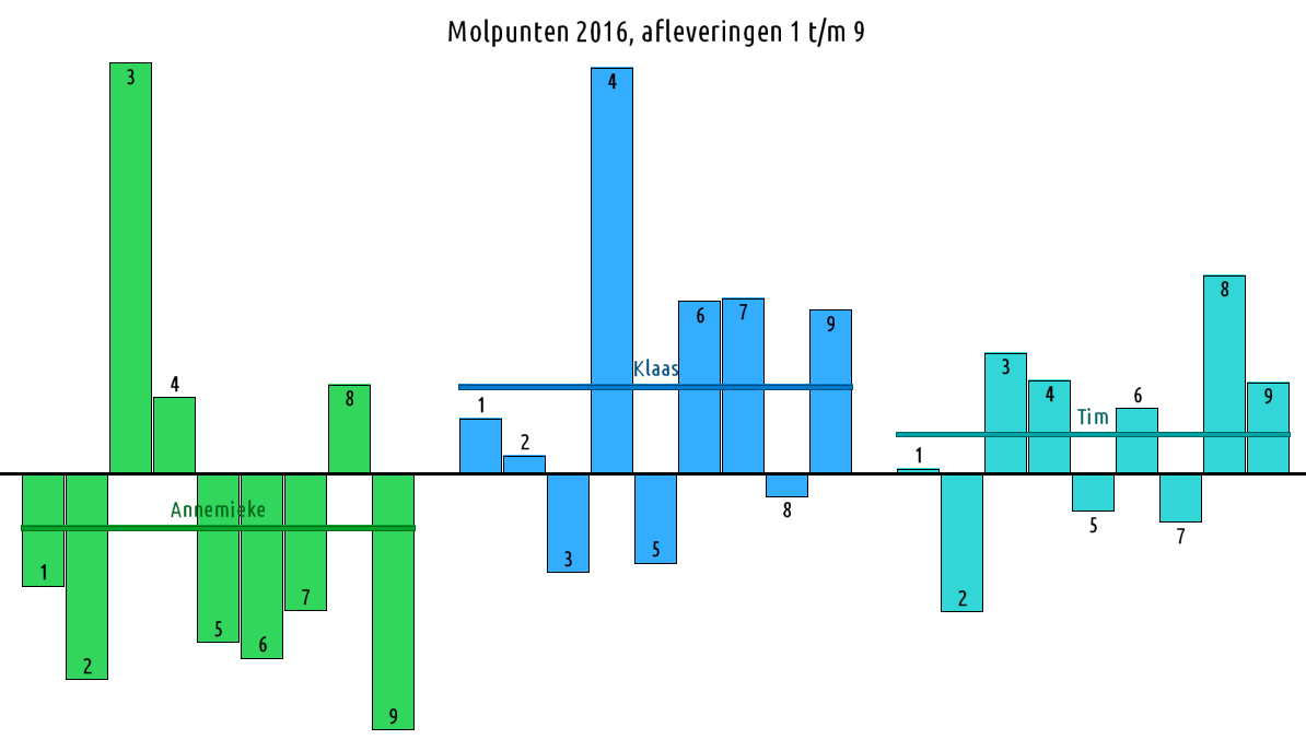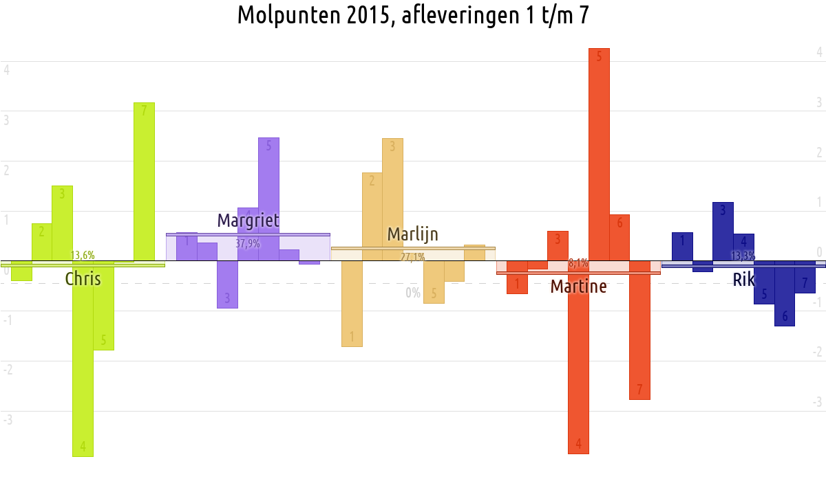 De deelnemer met de meeste molpunten is dus volgens deze theorie de mol.