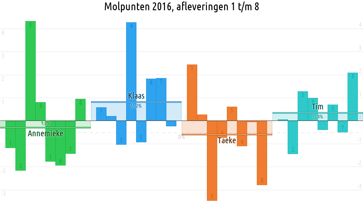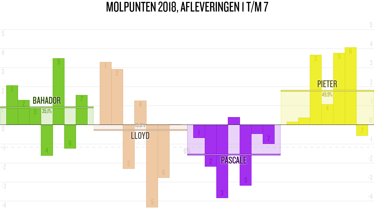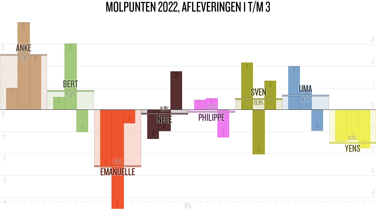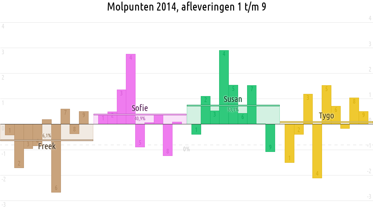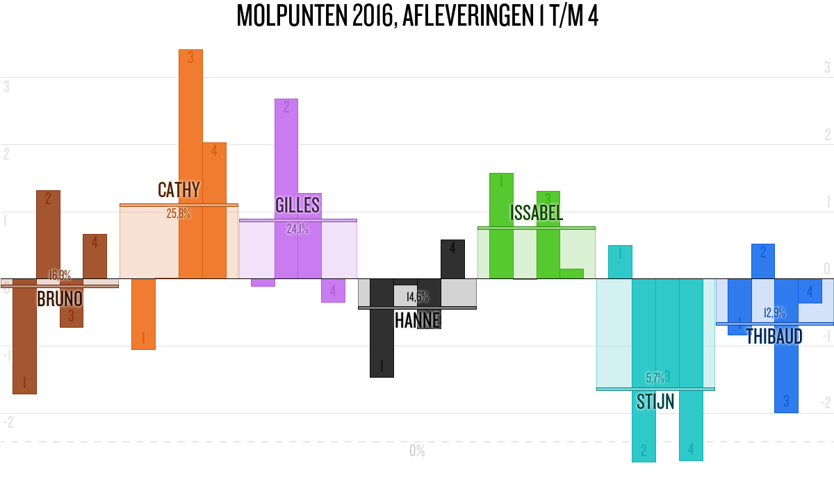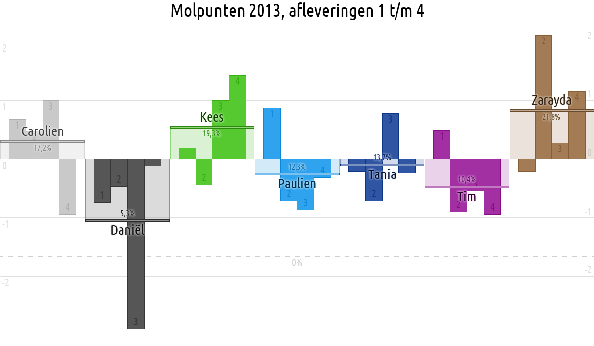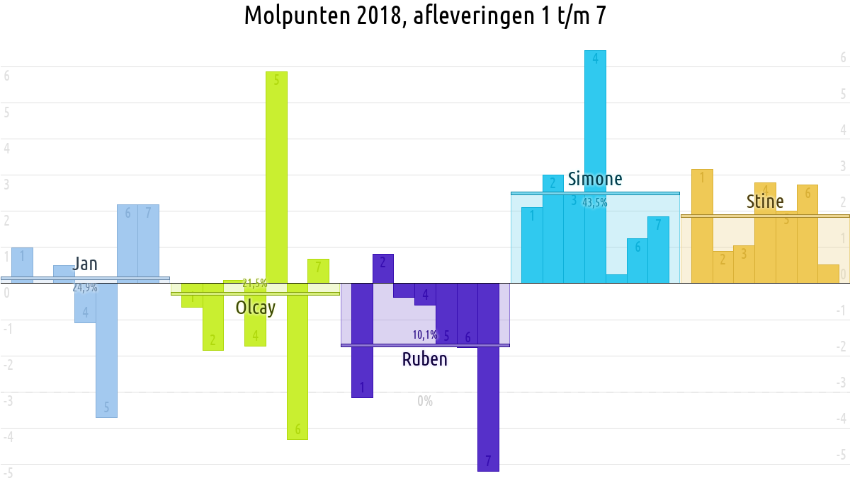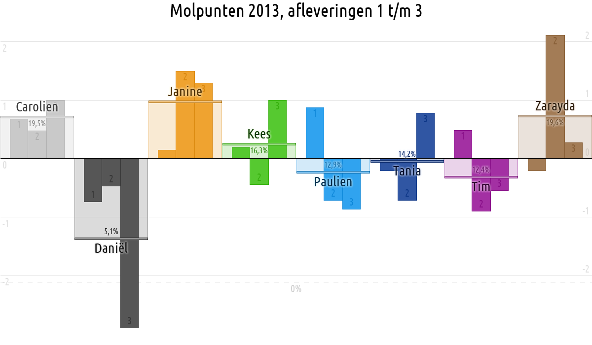 De deelnemer met de meeste molpunten is dus volgens deze theorie de mol.