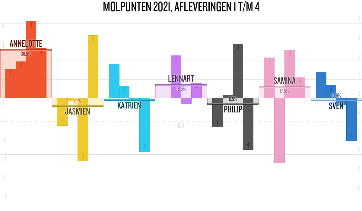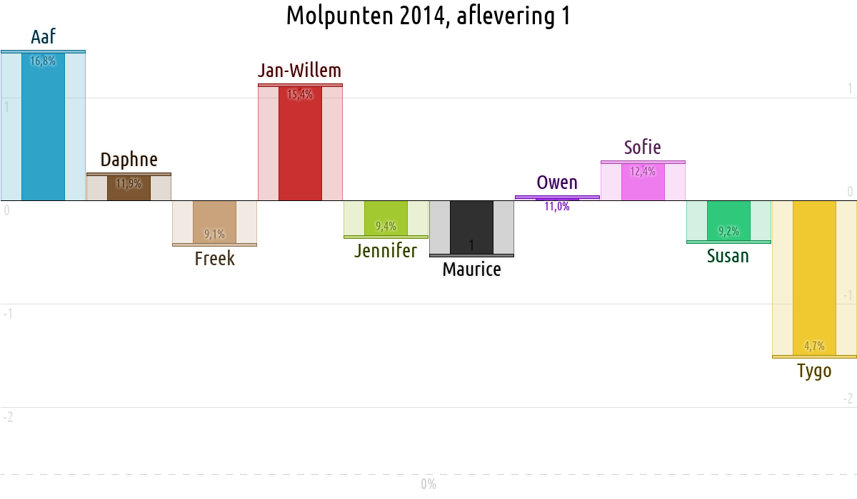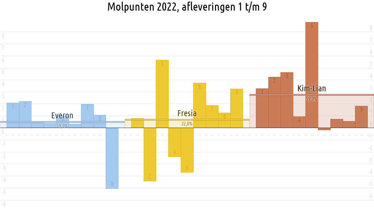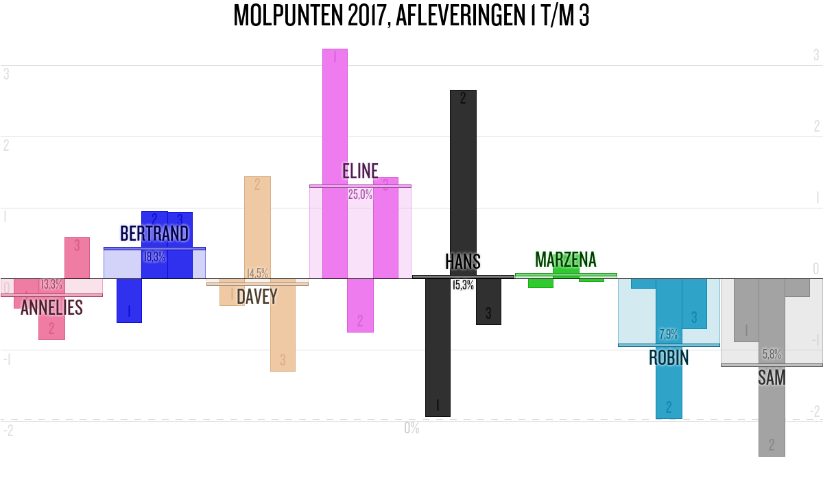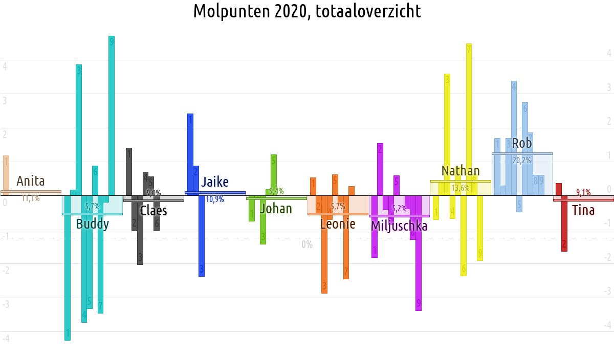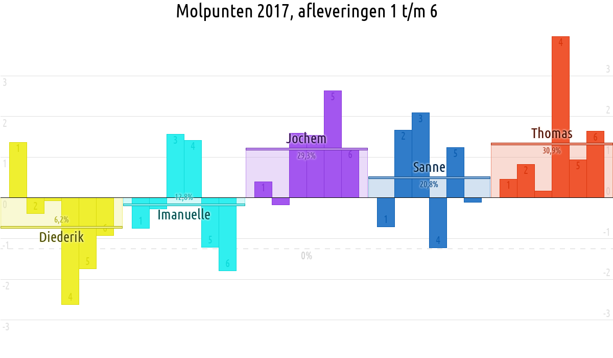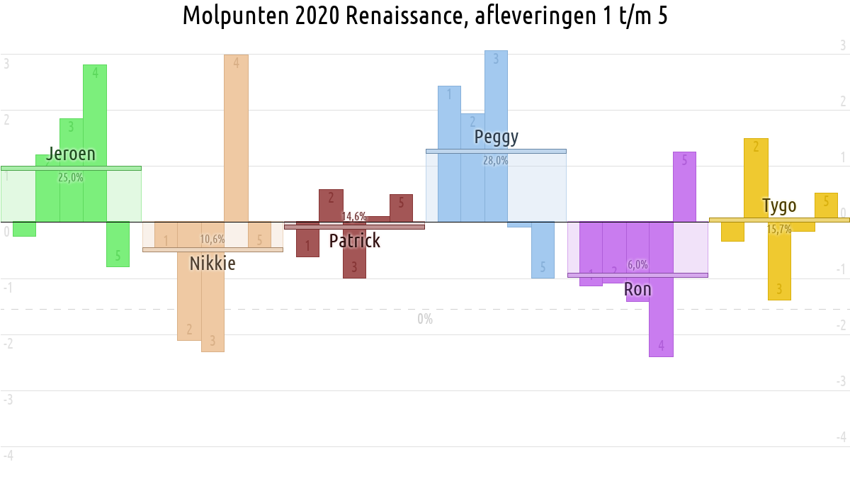 De deelnemer met de meeste molpunten is dus volgens deze theorie de mol.