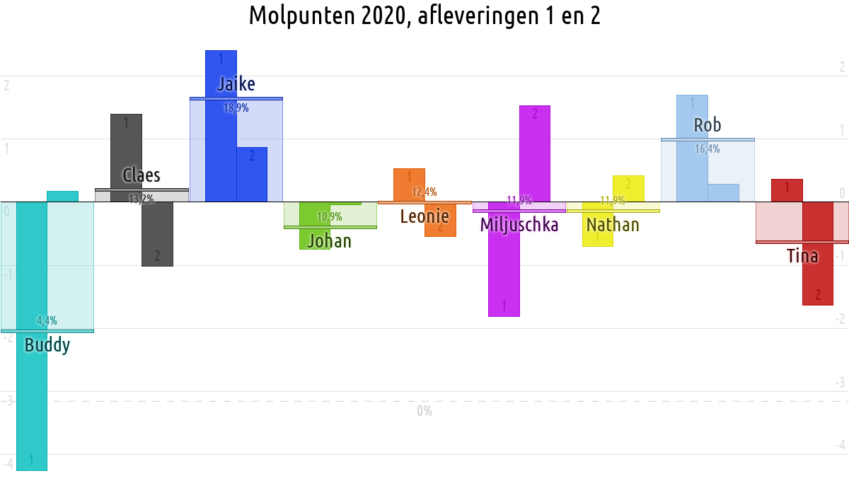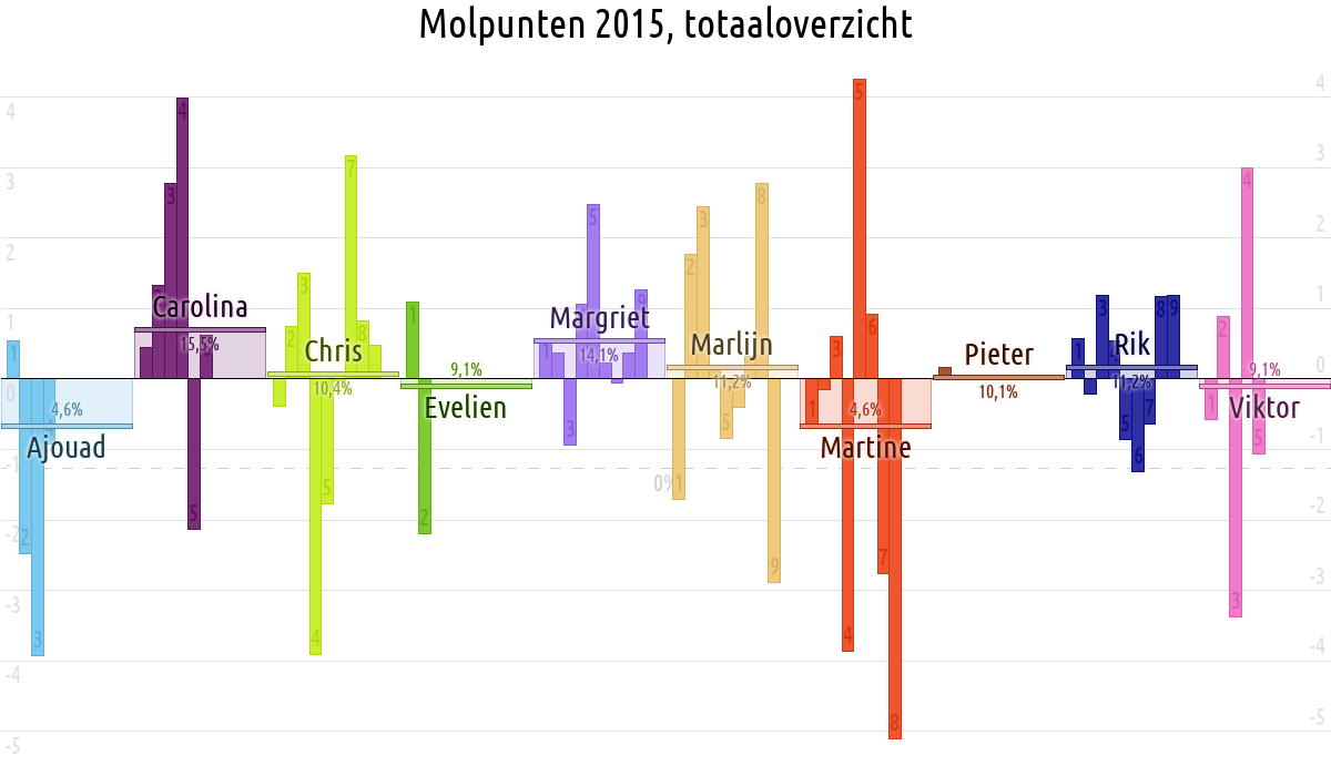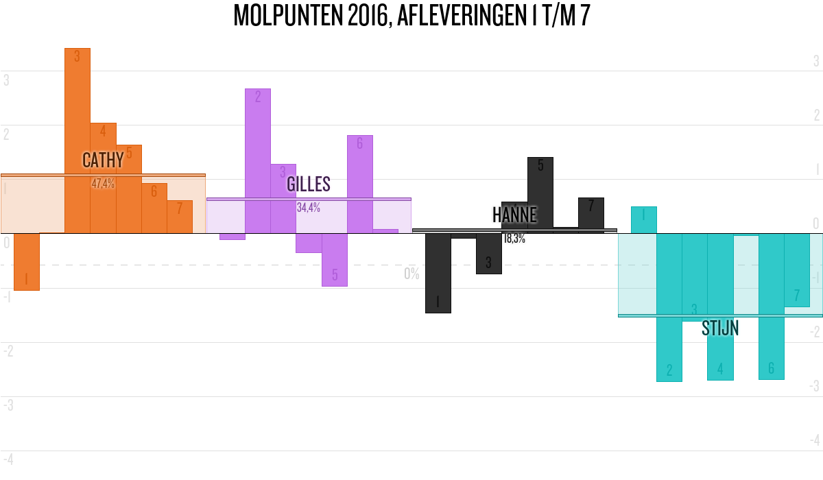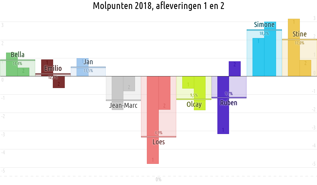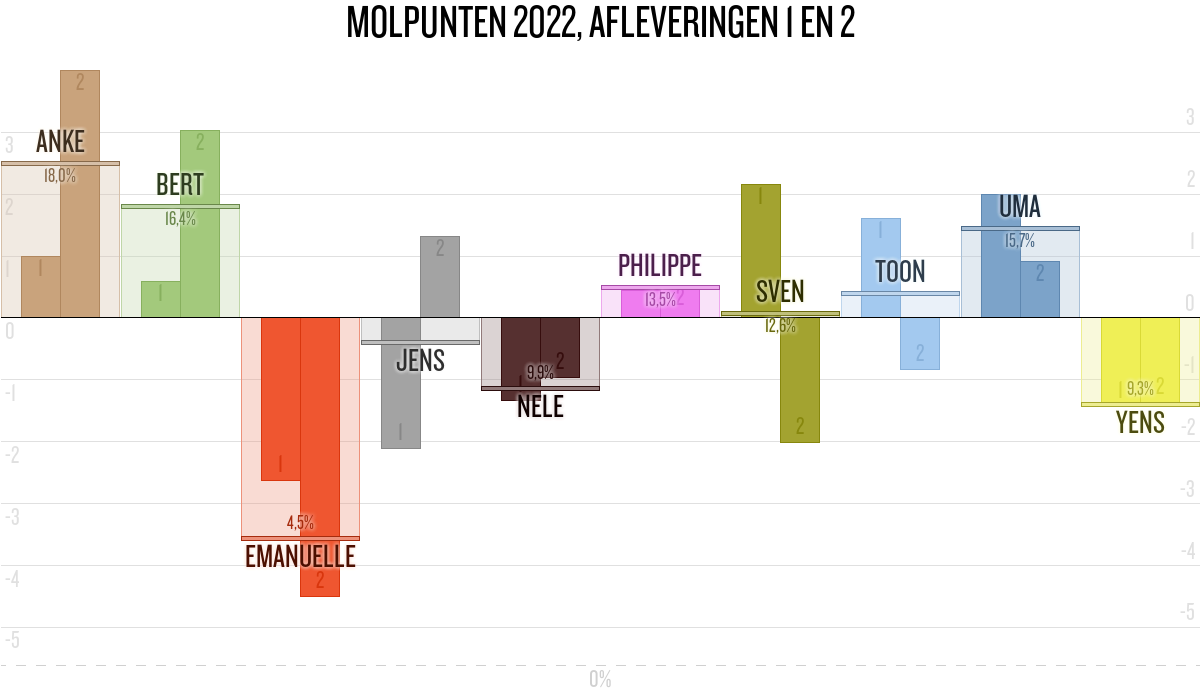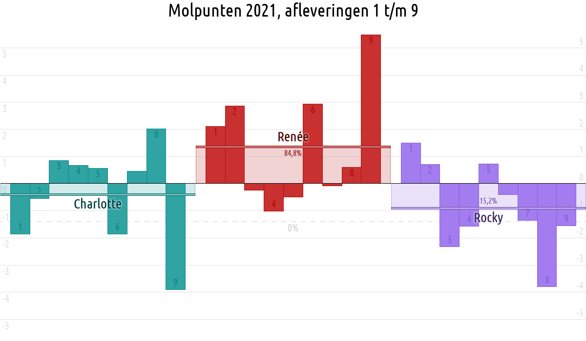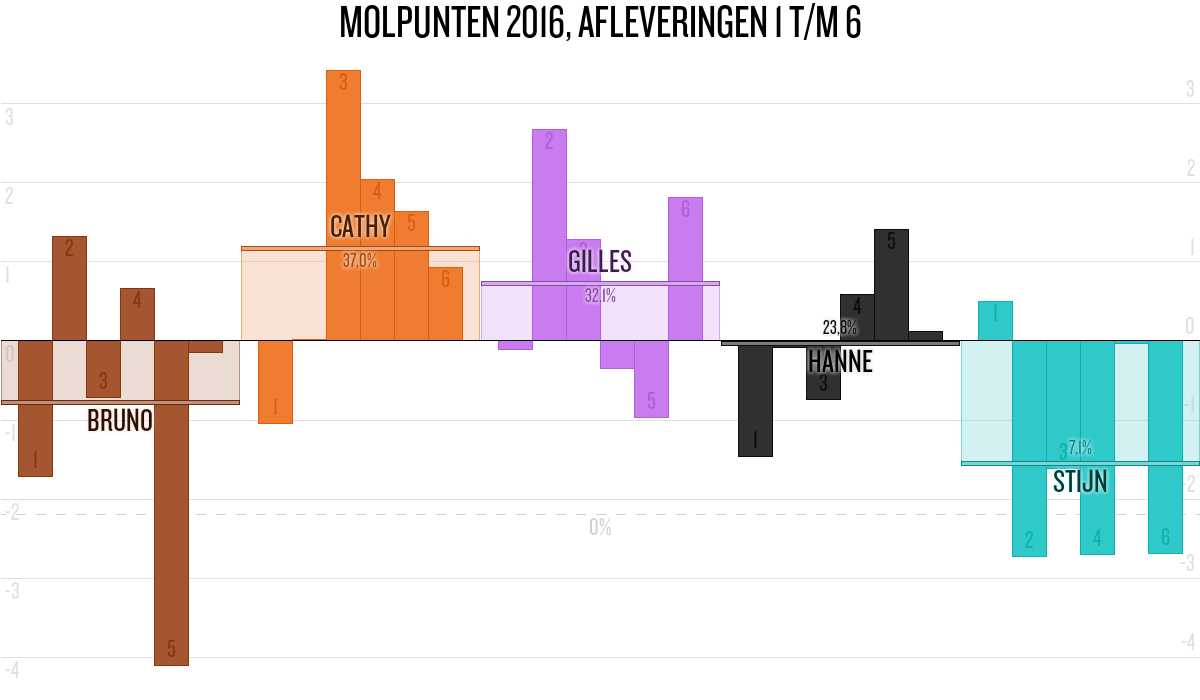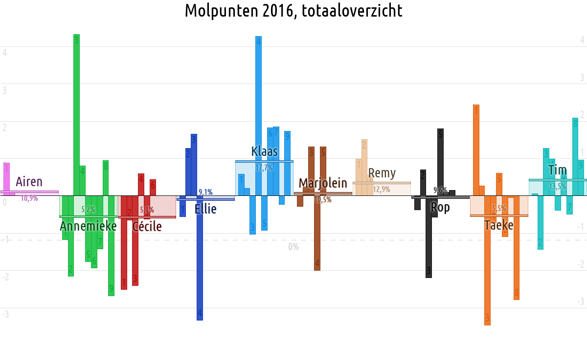 De deelnemer met de meeste molpunten is dus volgens deze theorie de mol.