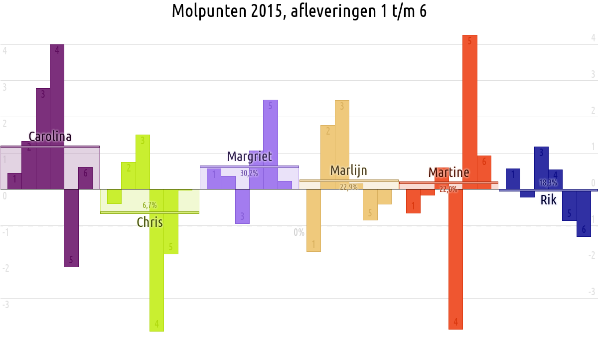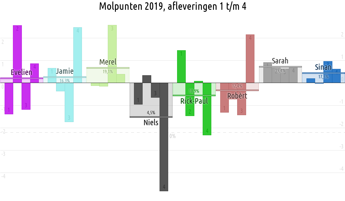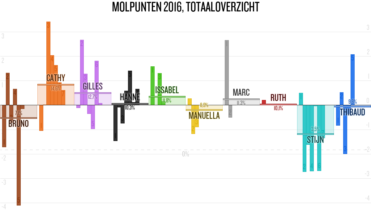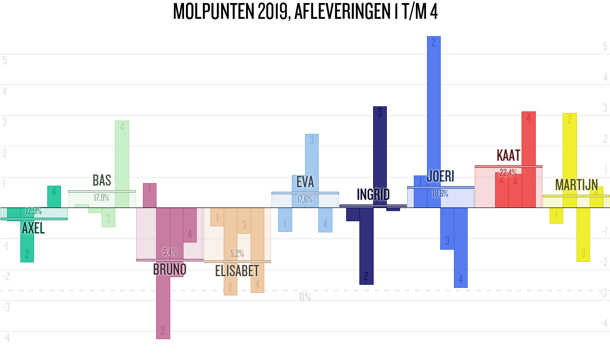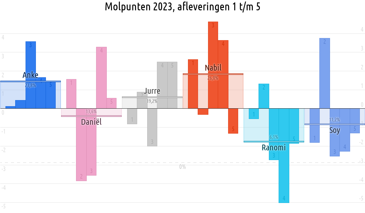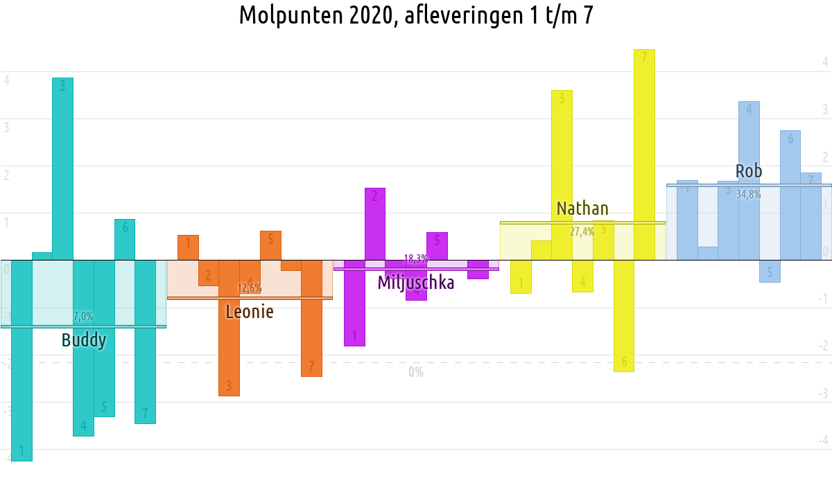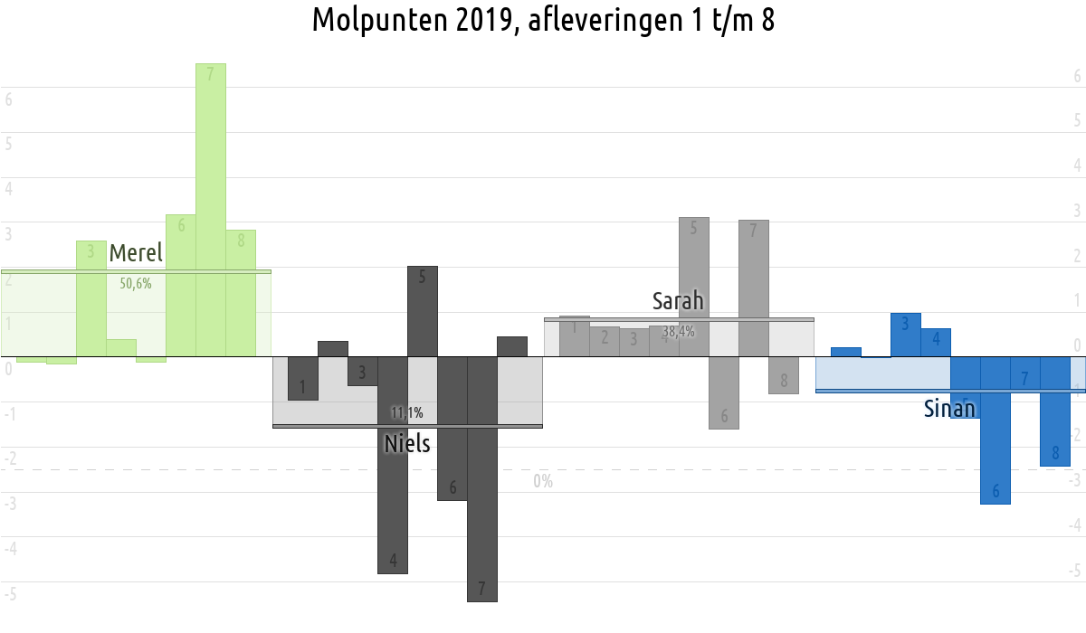 De deelnemer met de meeste molpunten is dus volgens deze theorie de mol.