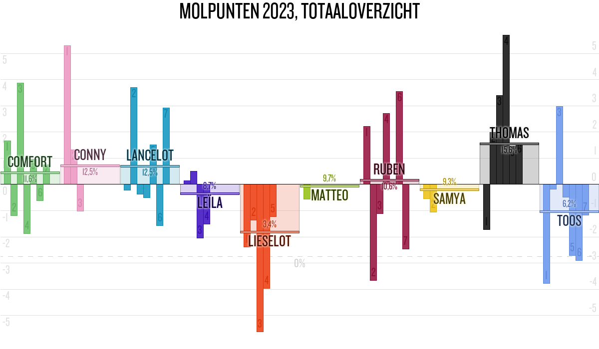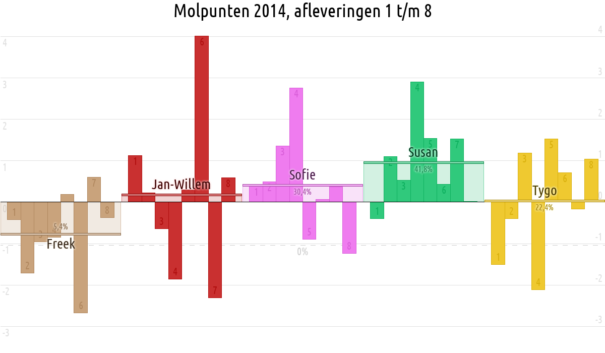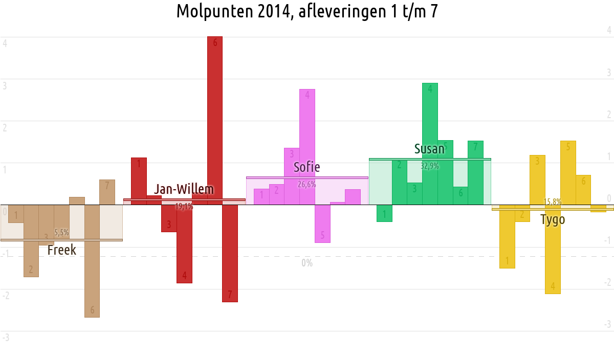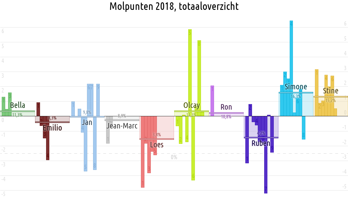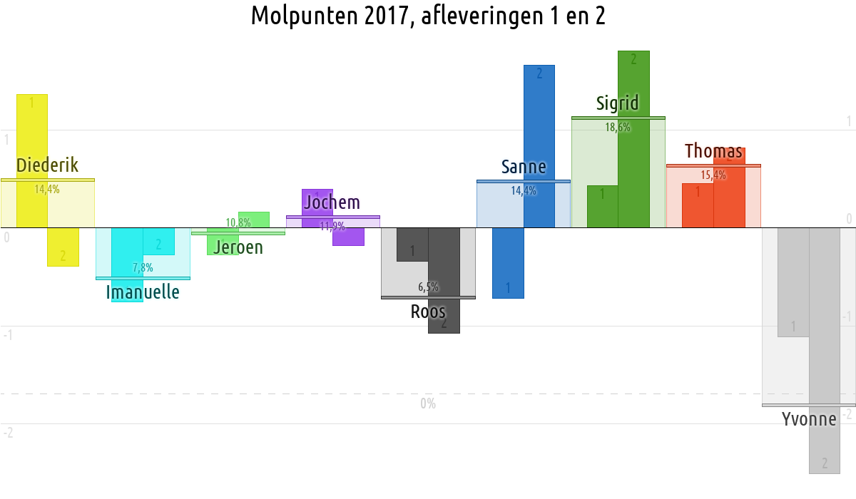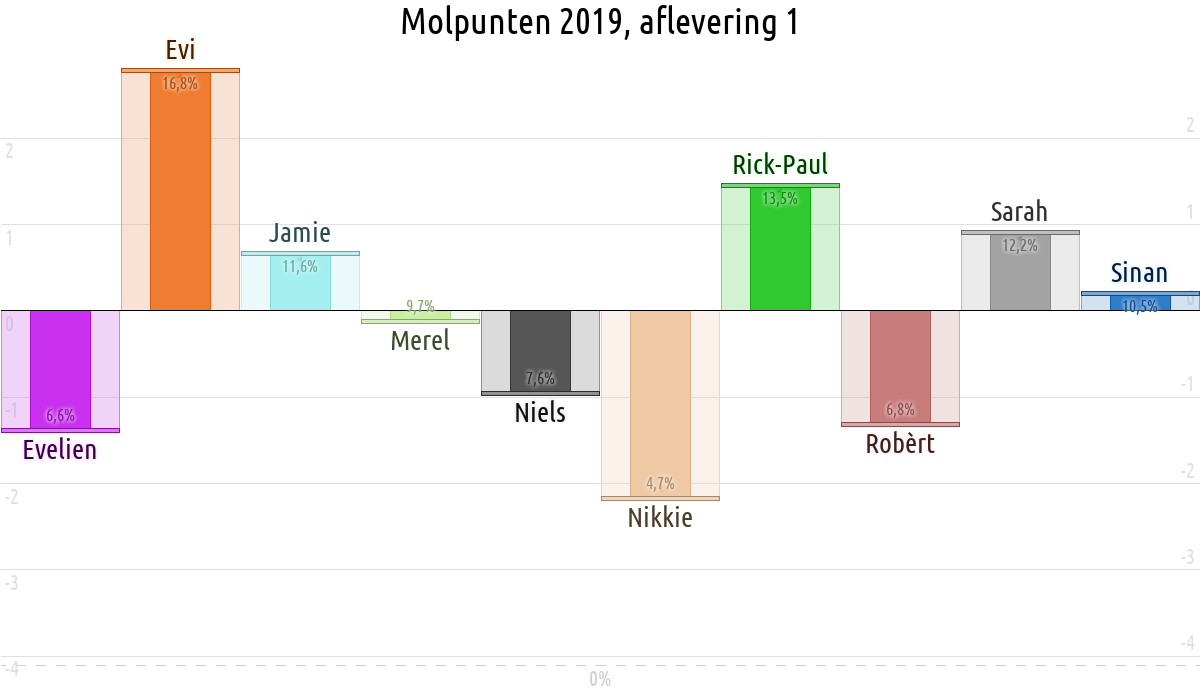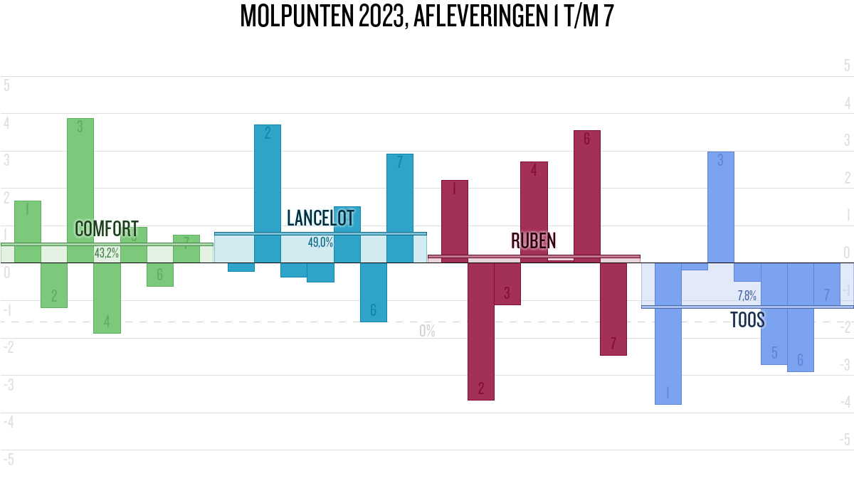 De deelnemer met de meeste molpunten is dus volgens deze theorie de mol.