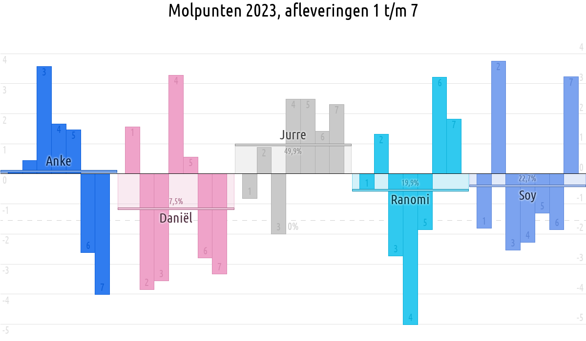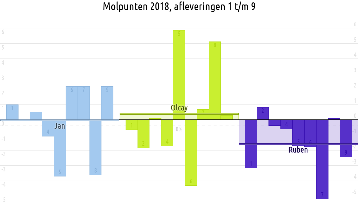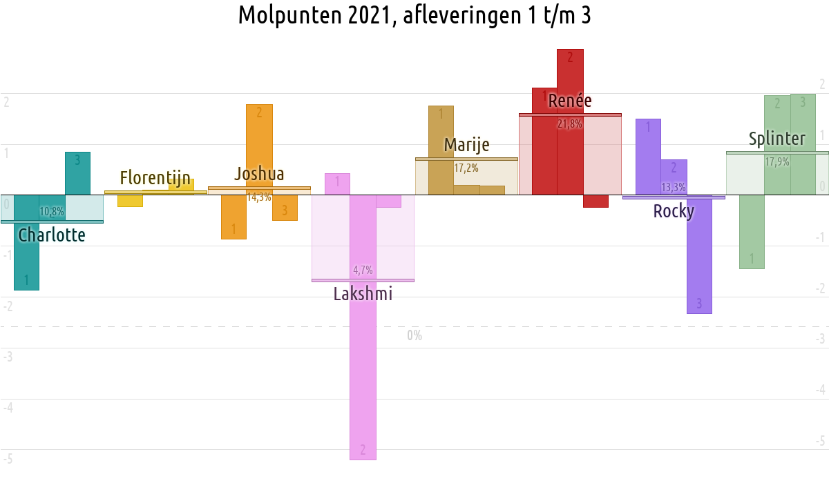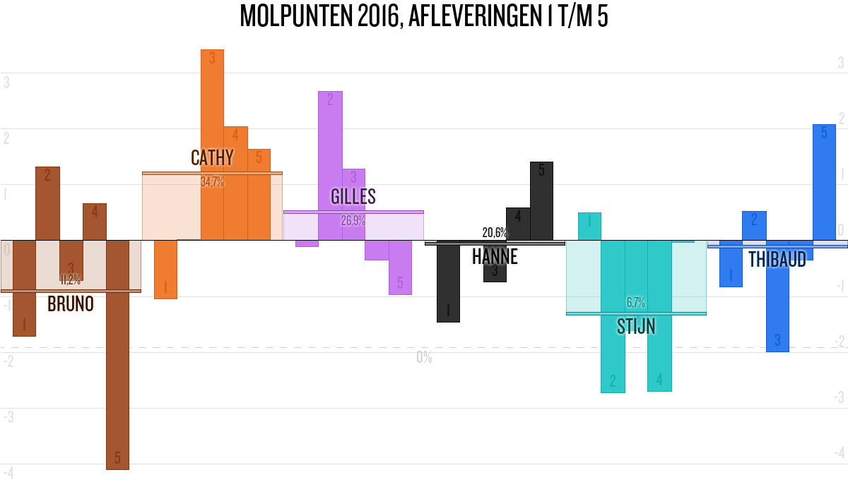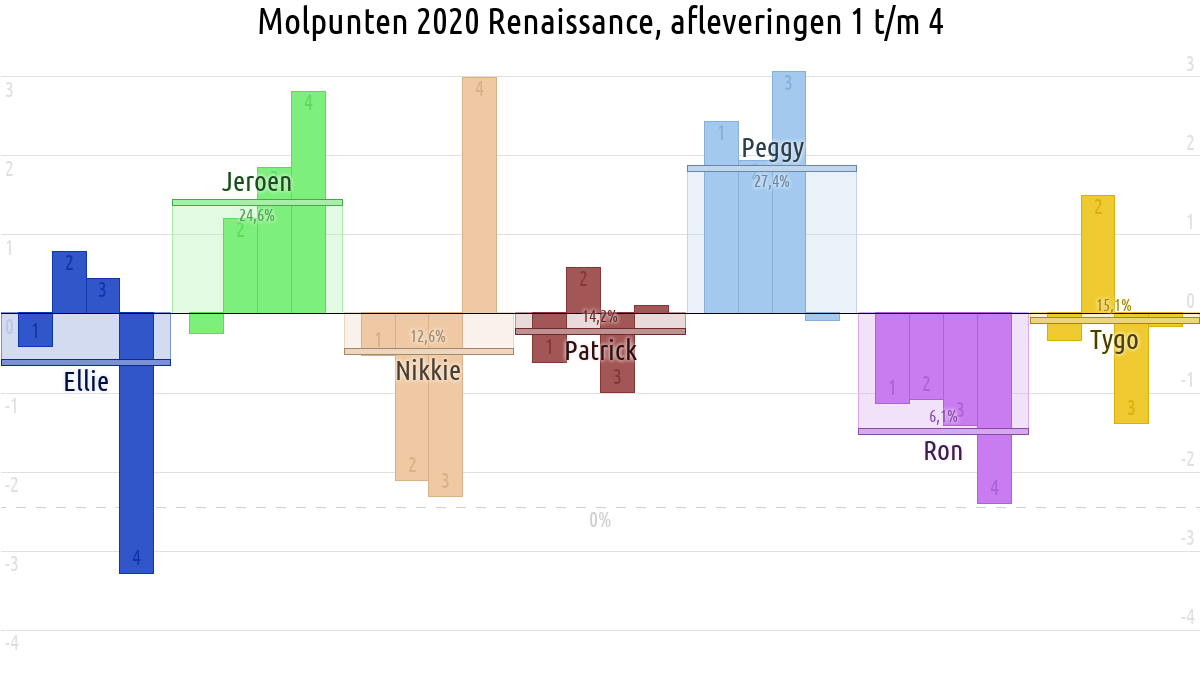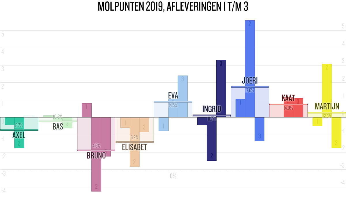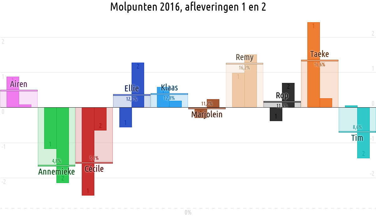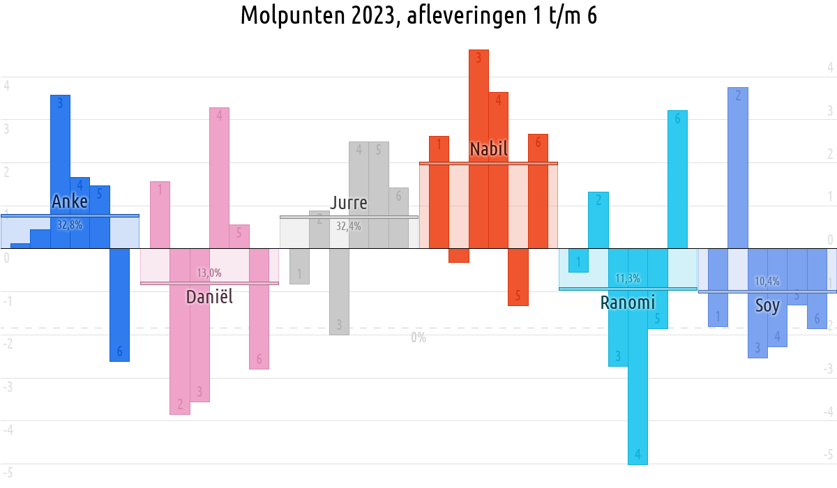 De deelnemer met de meeste molpunten is dus volgens deze theorie de mol.