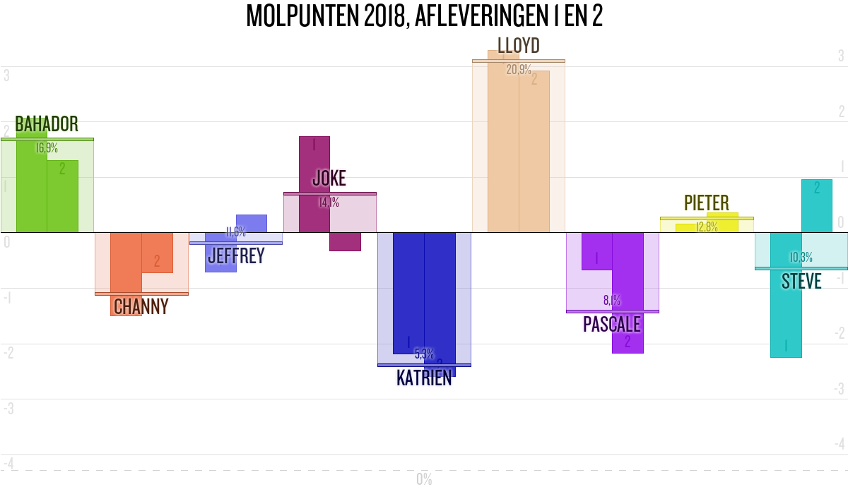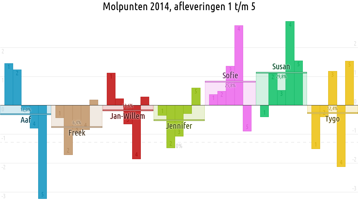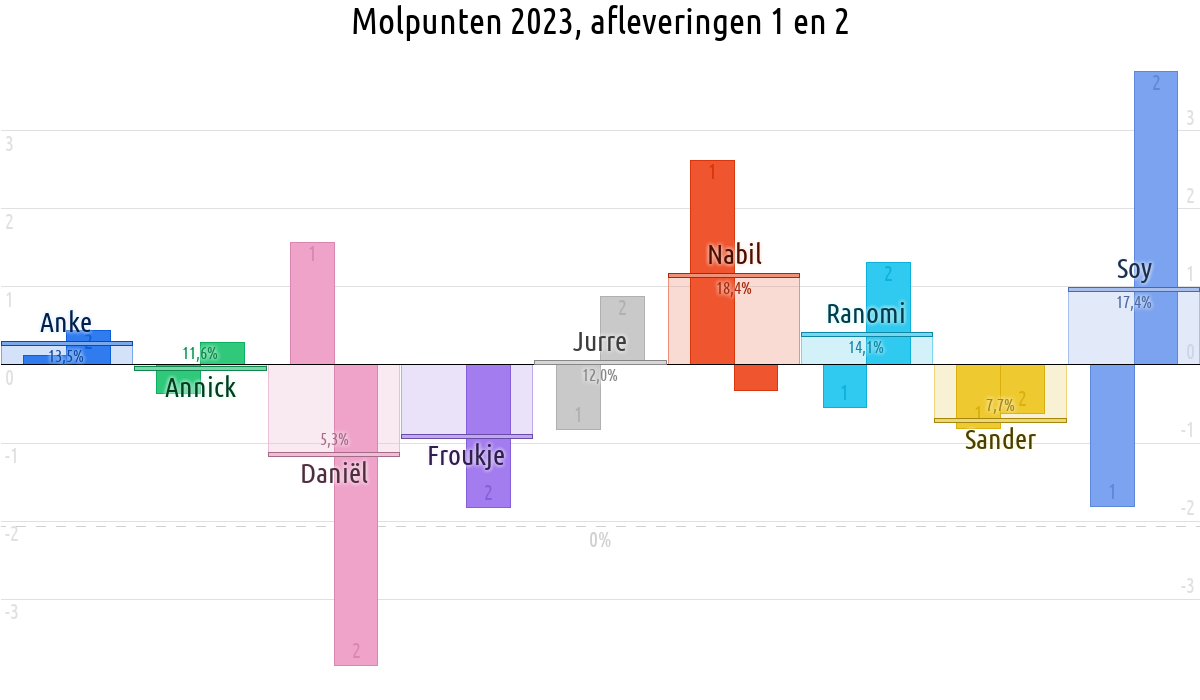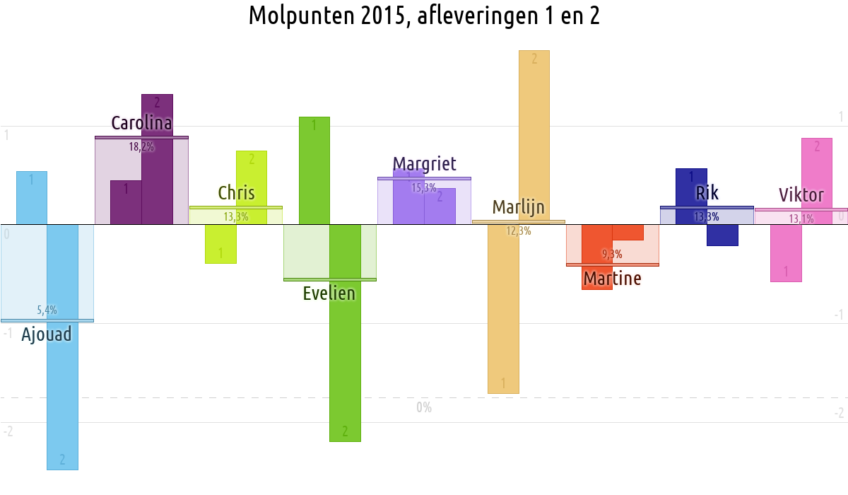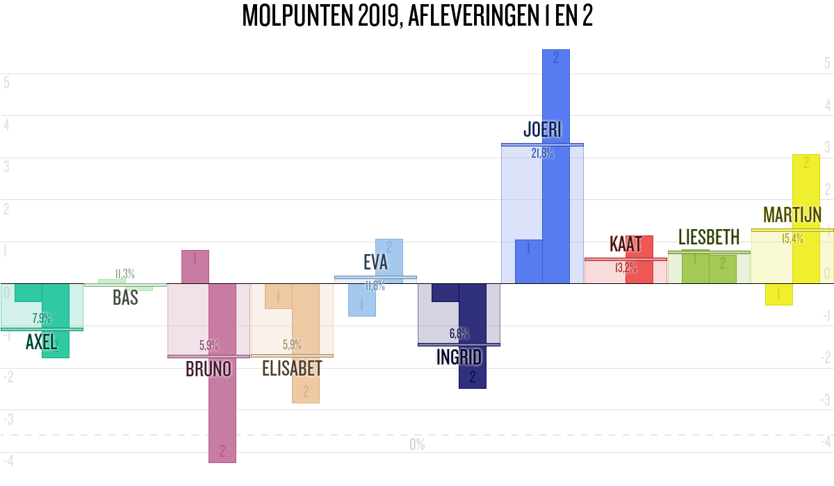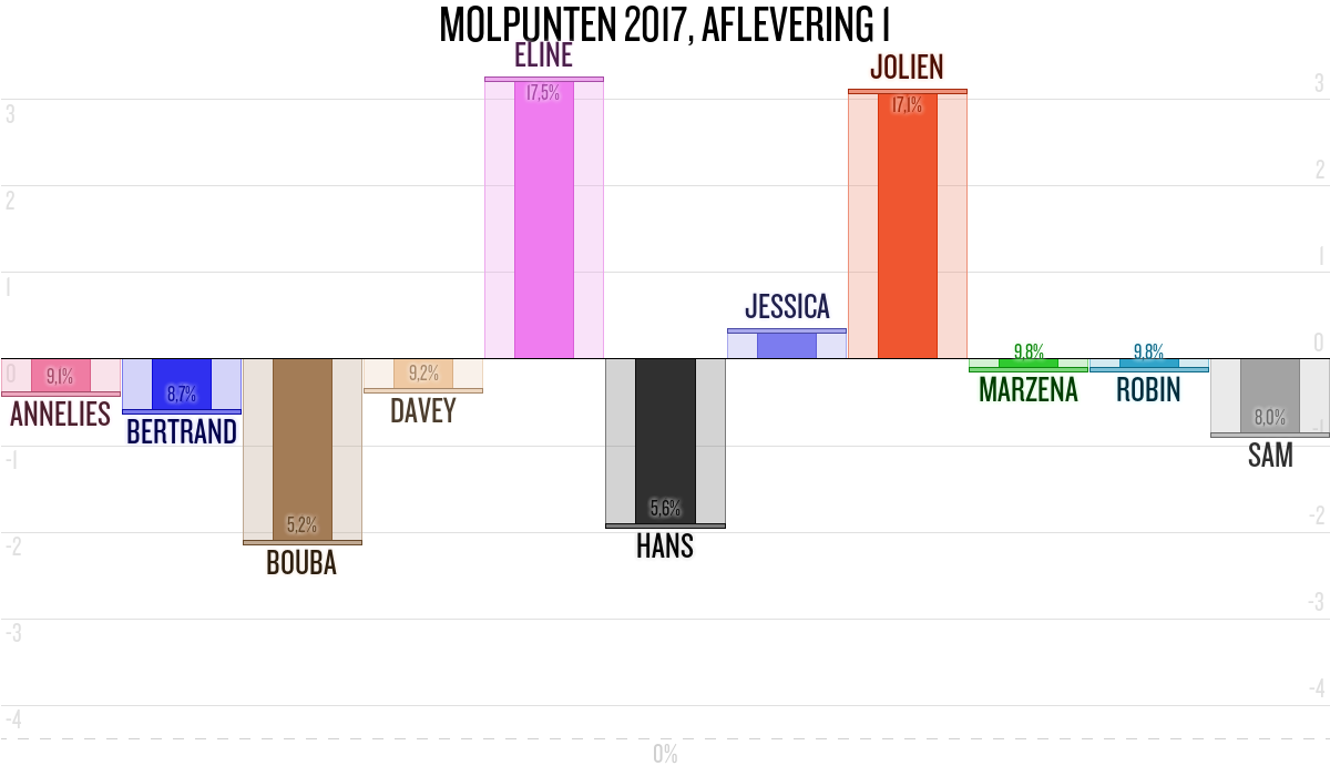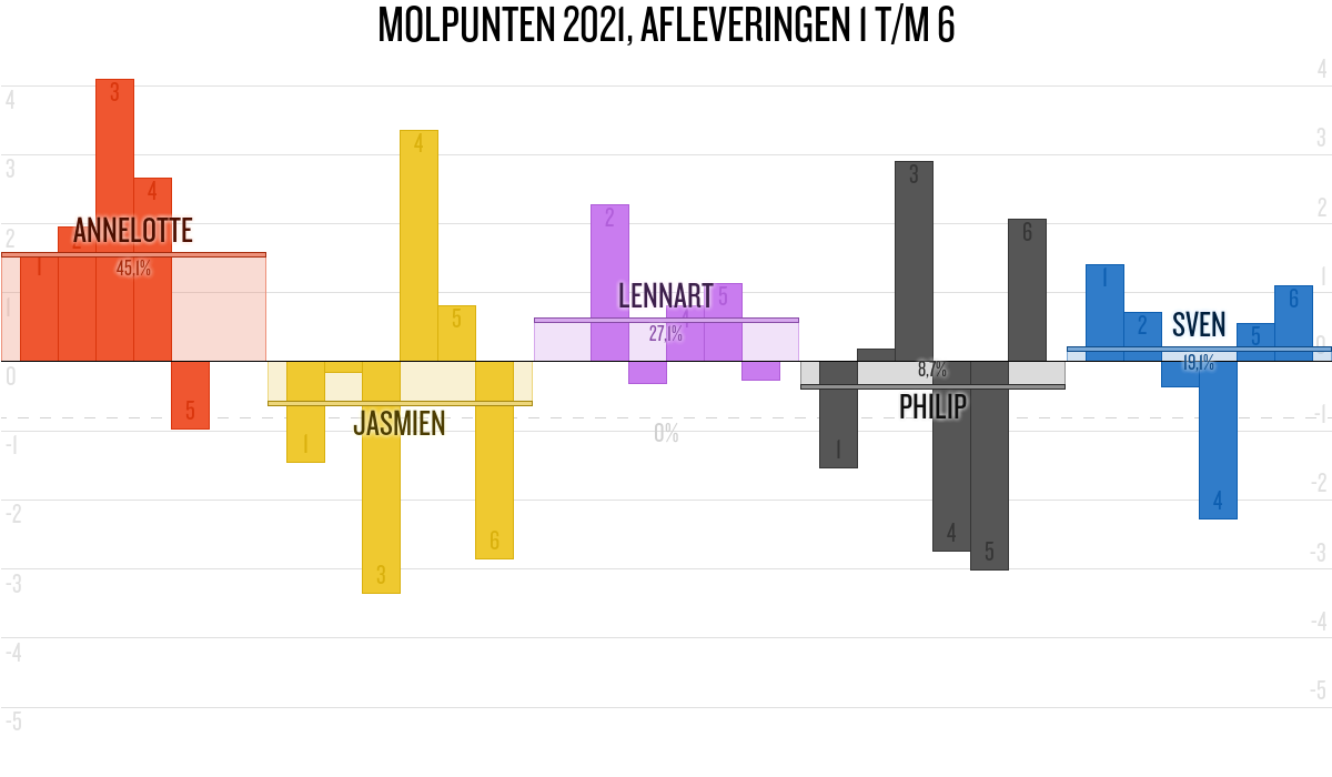 De deelnemer met de meeste molpunten is dus volgens deze theorie de mol.