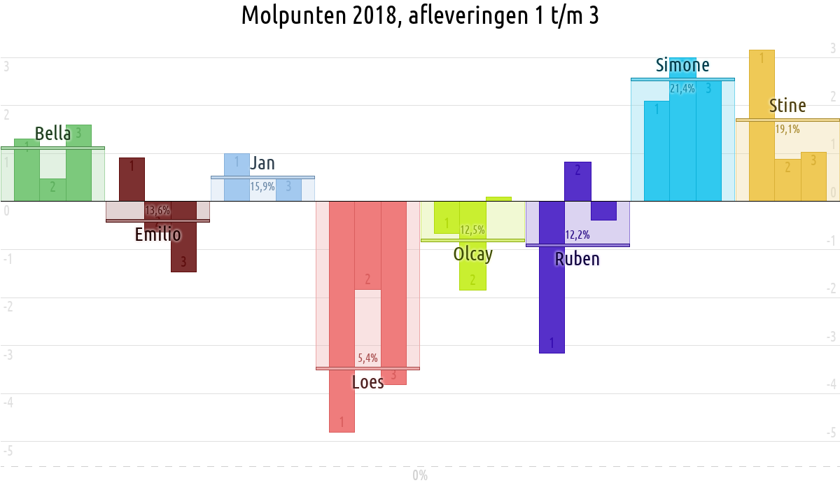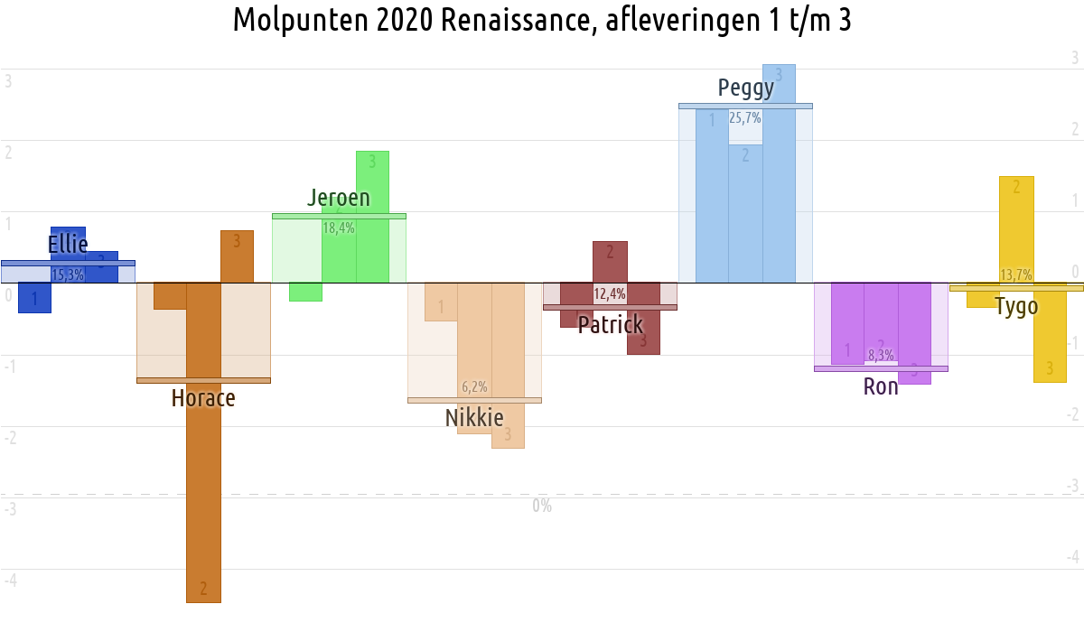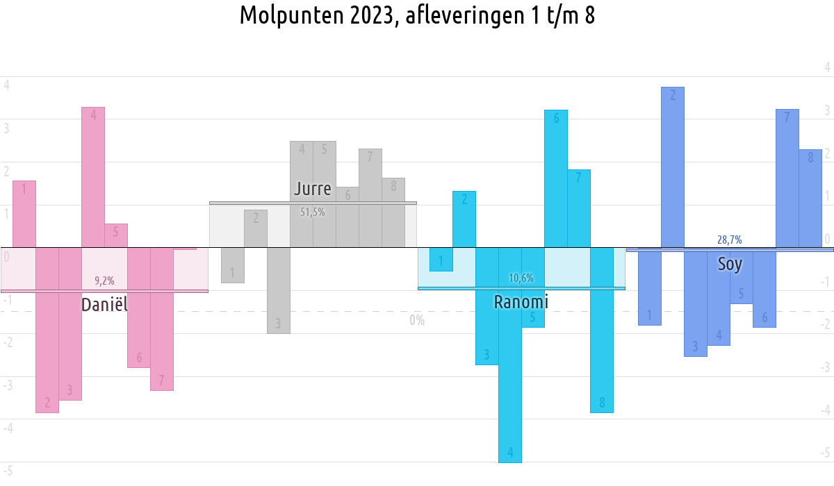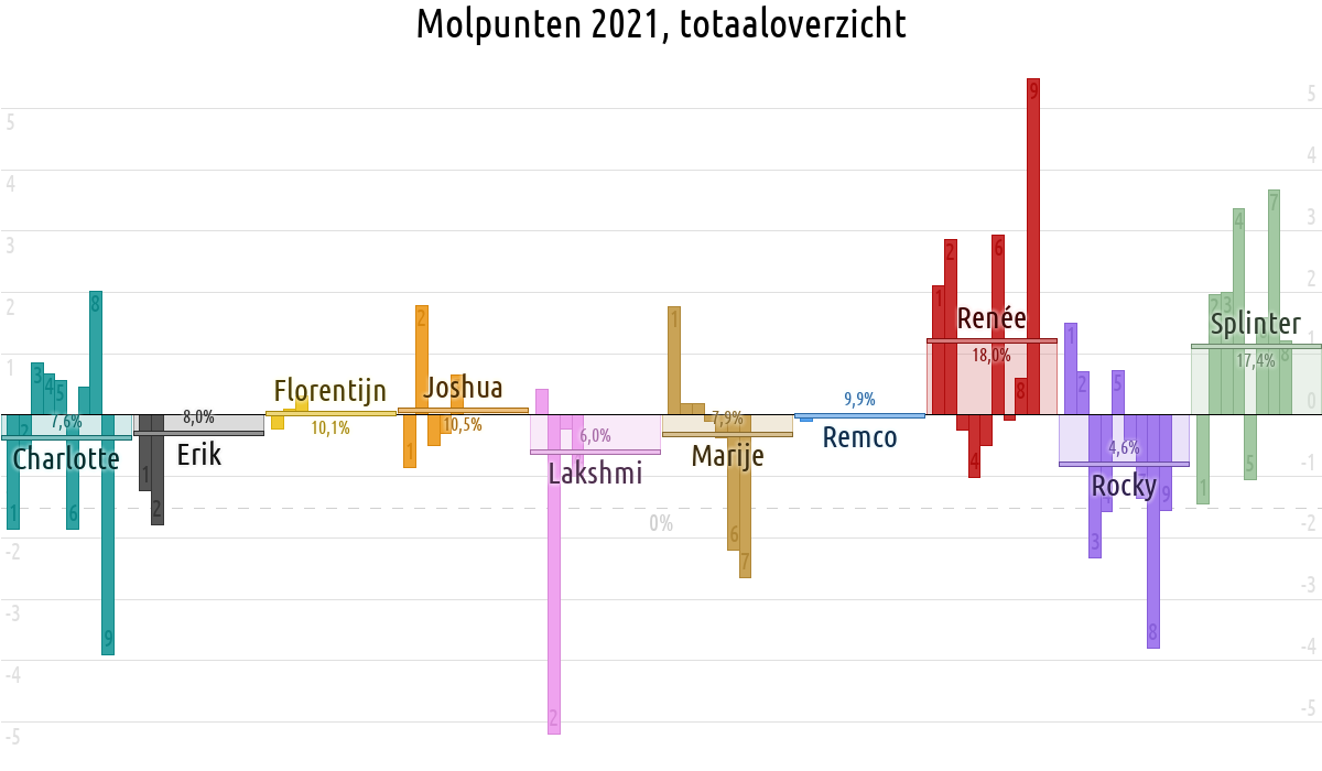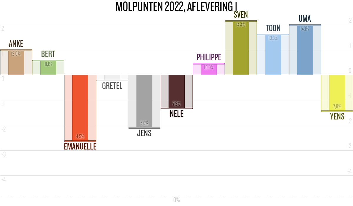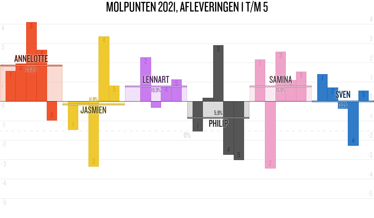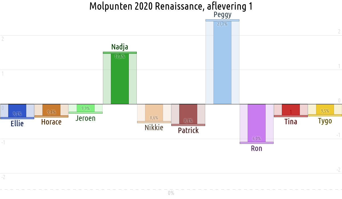 De deelnemer met de meeste molpunten is dus volgens deze theorie de mol.