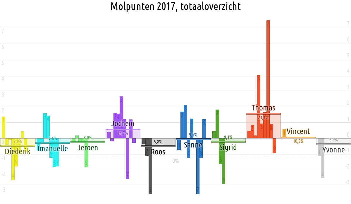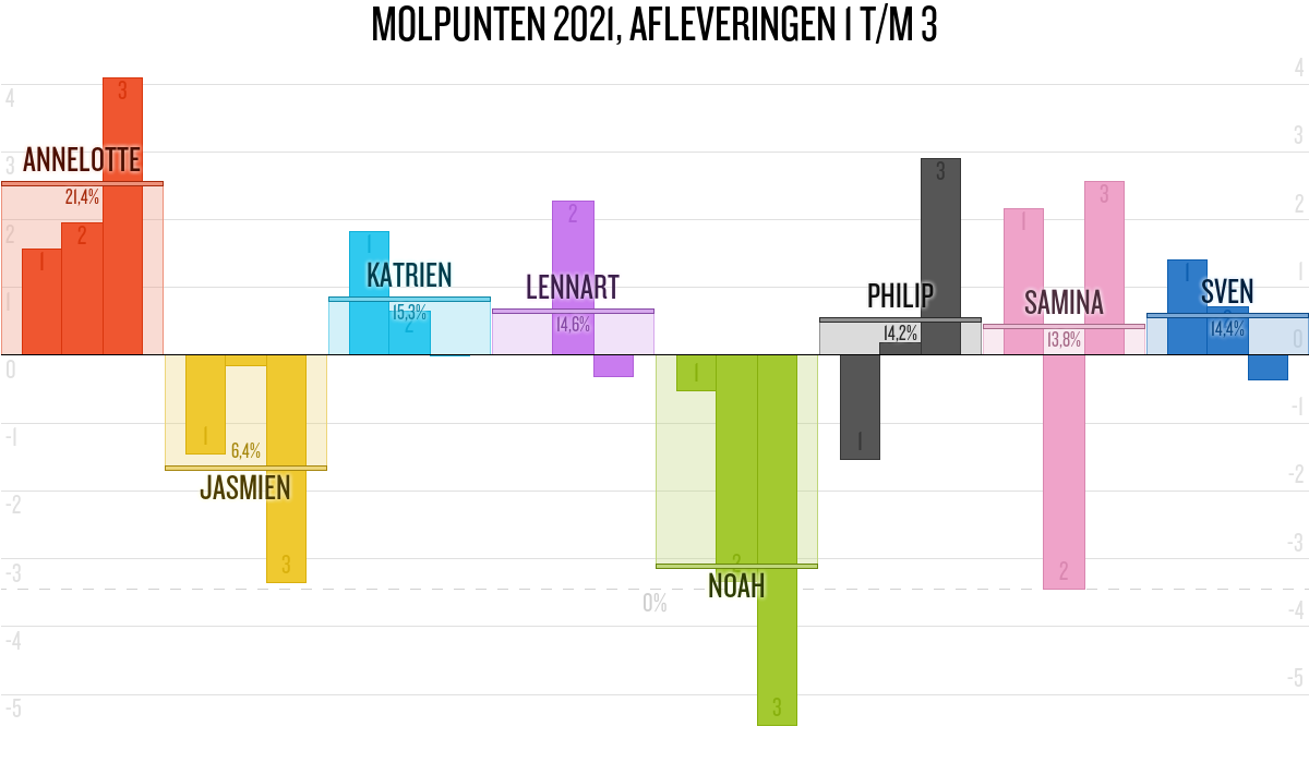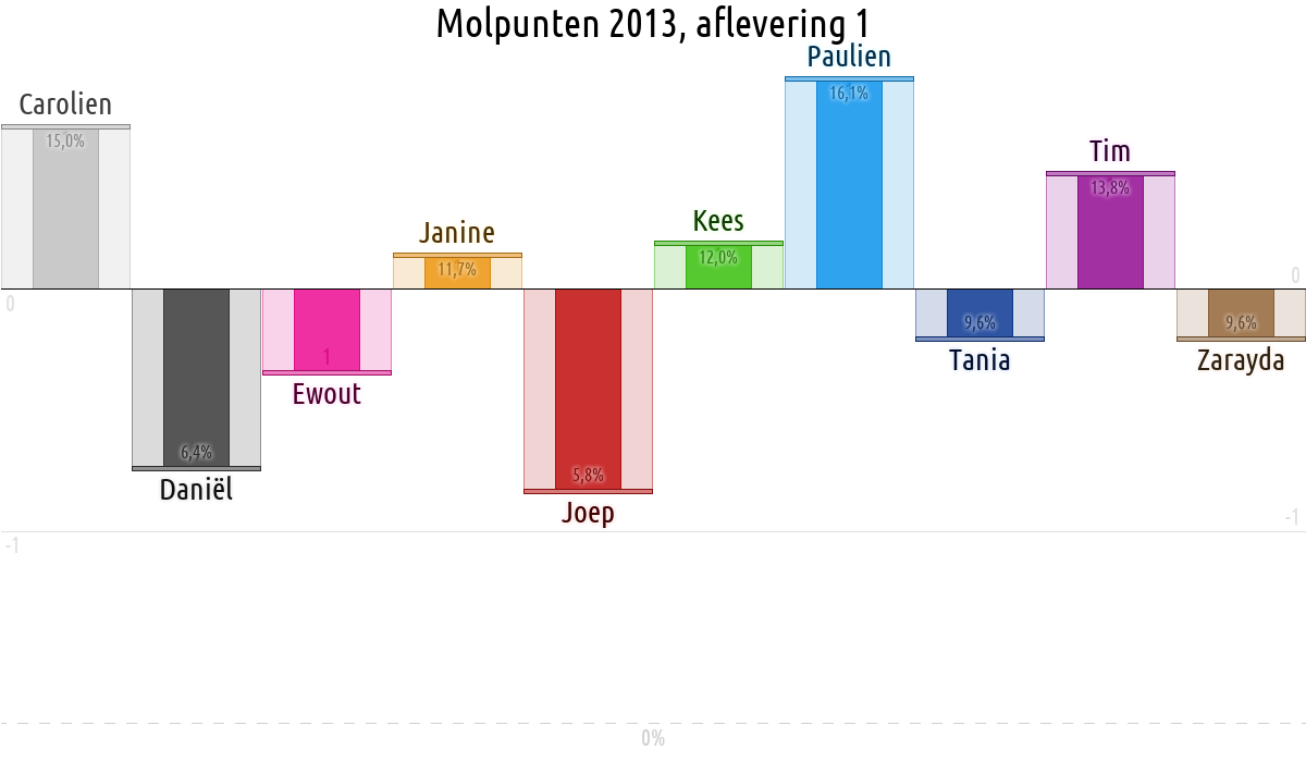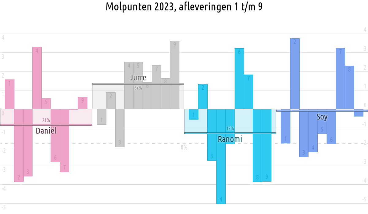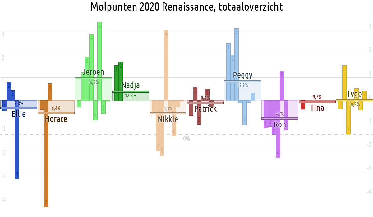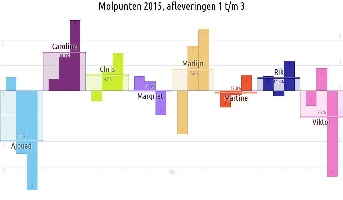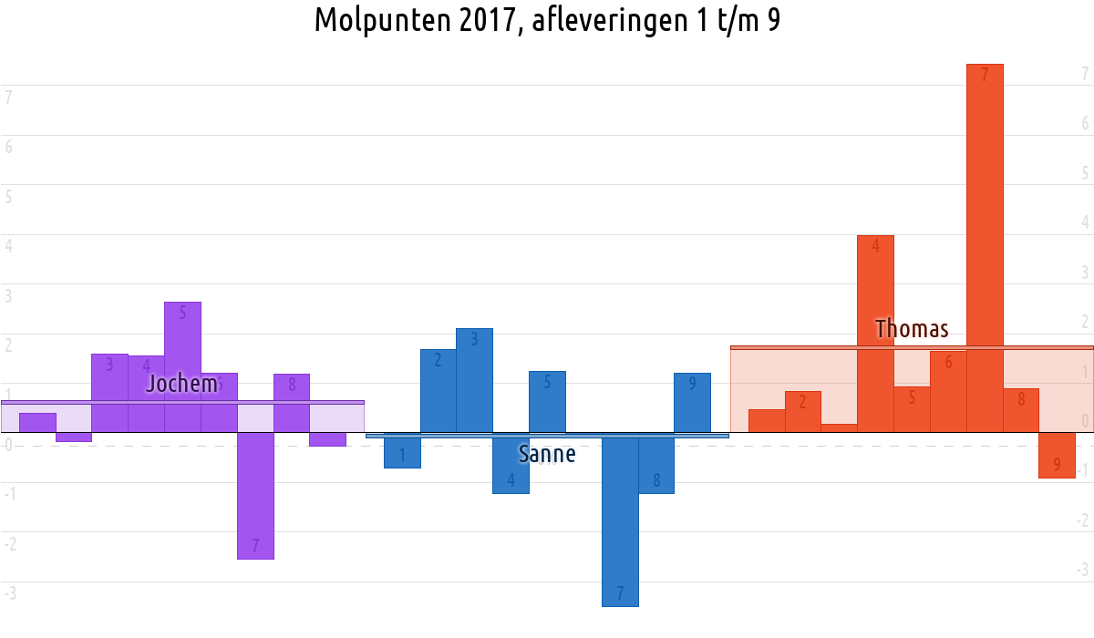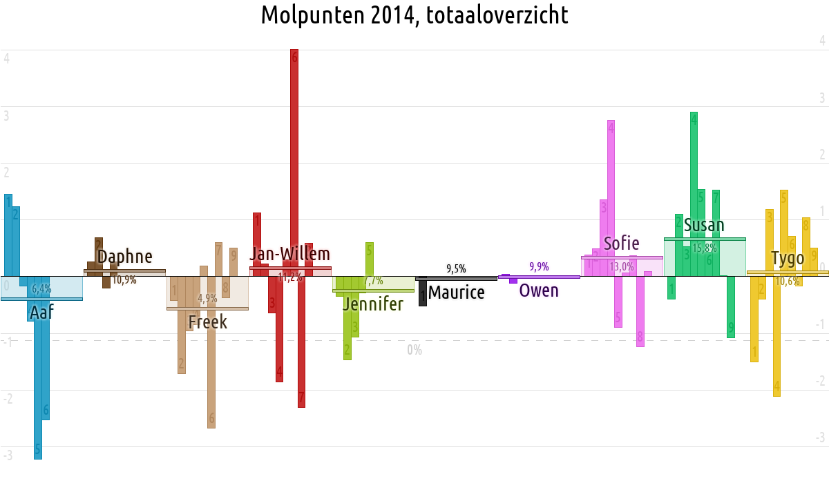 De deelnemer met de meeste molpunten is dus volgens deze theorie de mol.