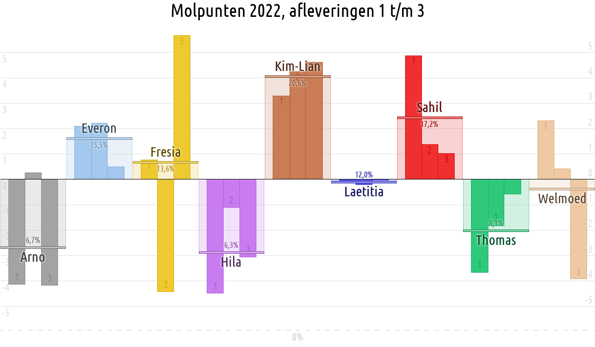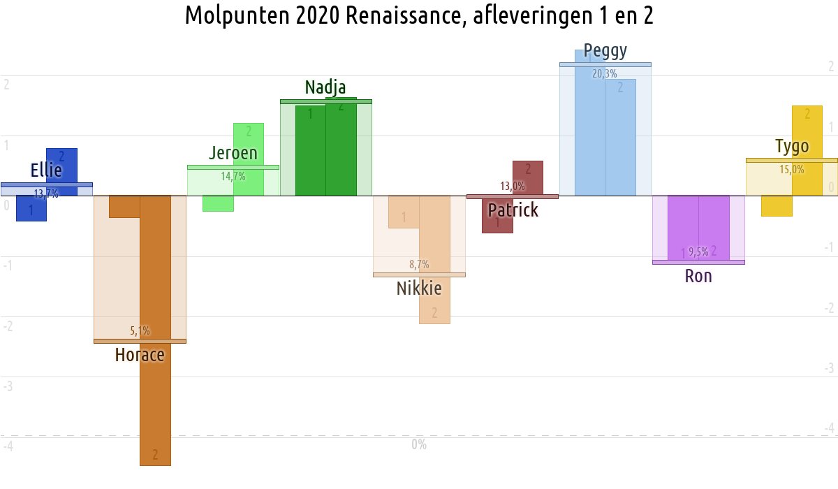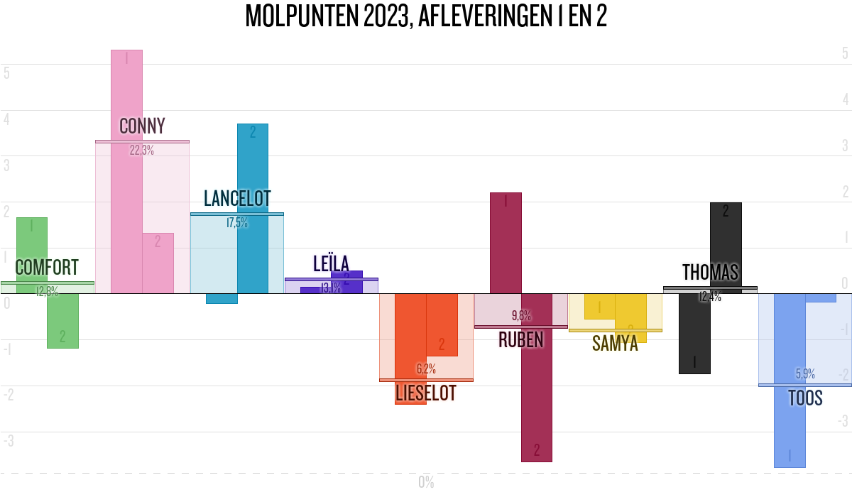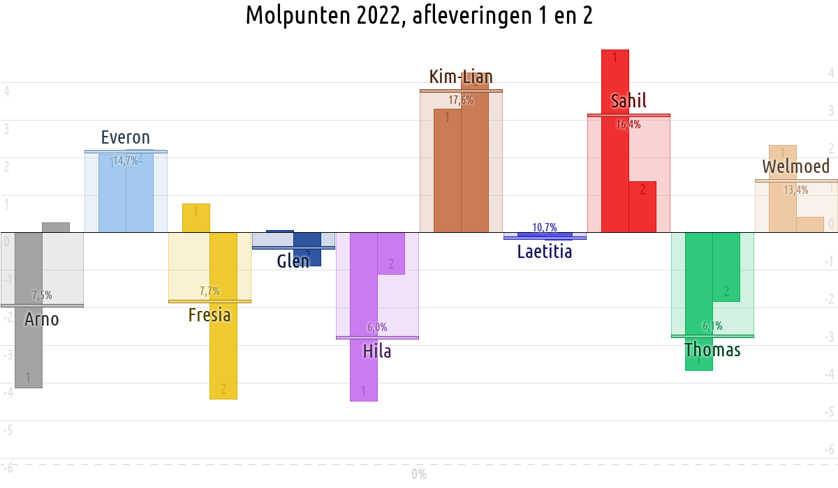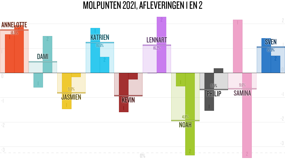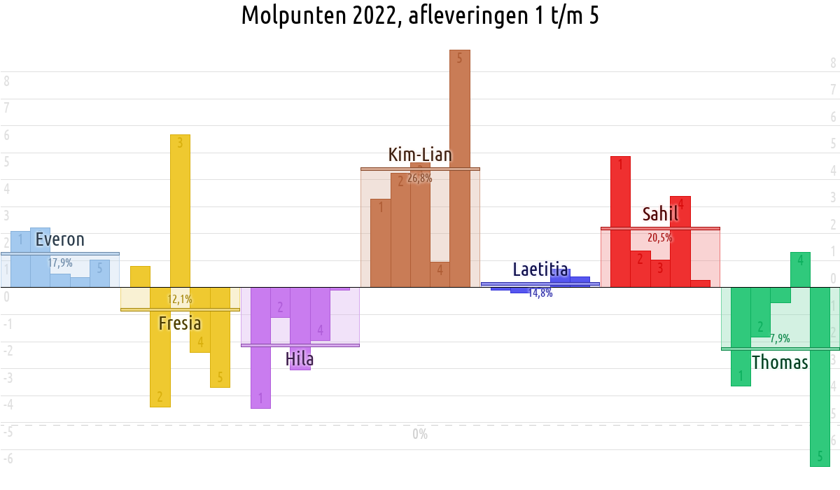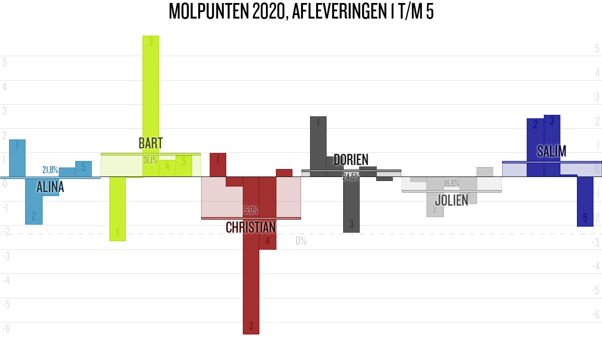 De deelnemer met de meeste molpunten is dus volgens deze theorie de mol.